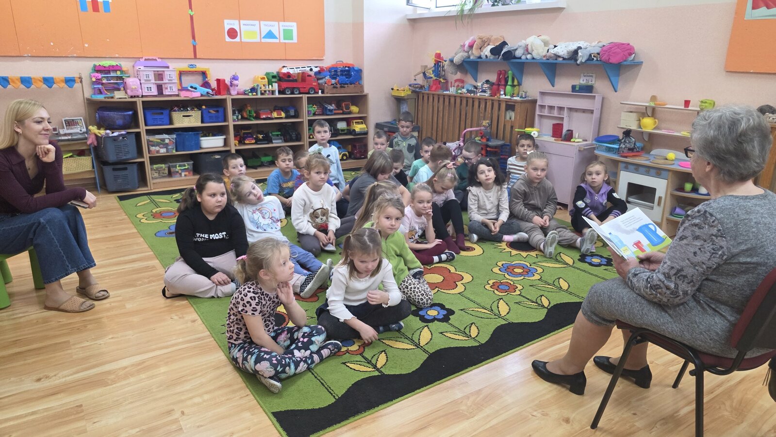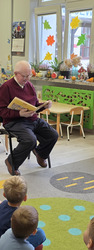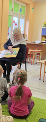 Czytanie bajek w przedszkolu oraz zorganizowany przez nich Dzień Seniora