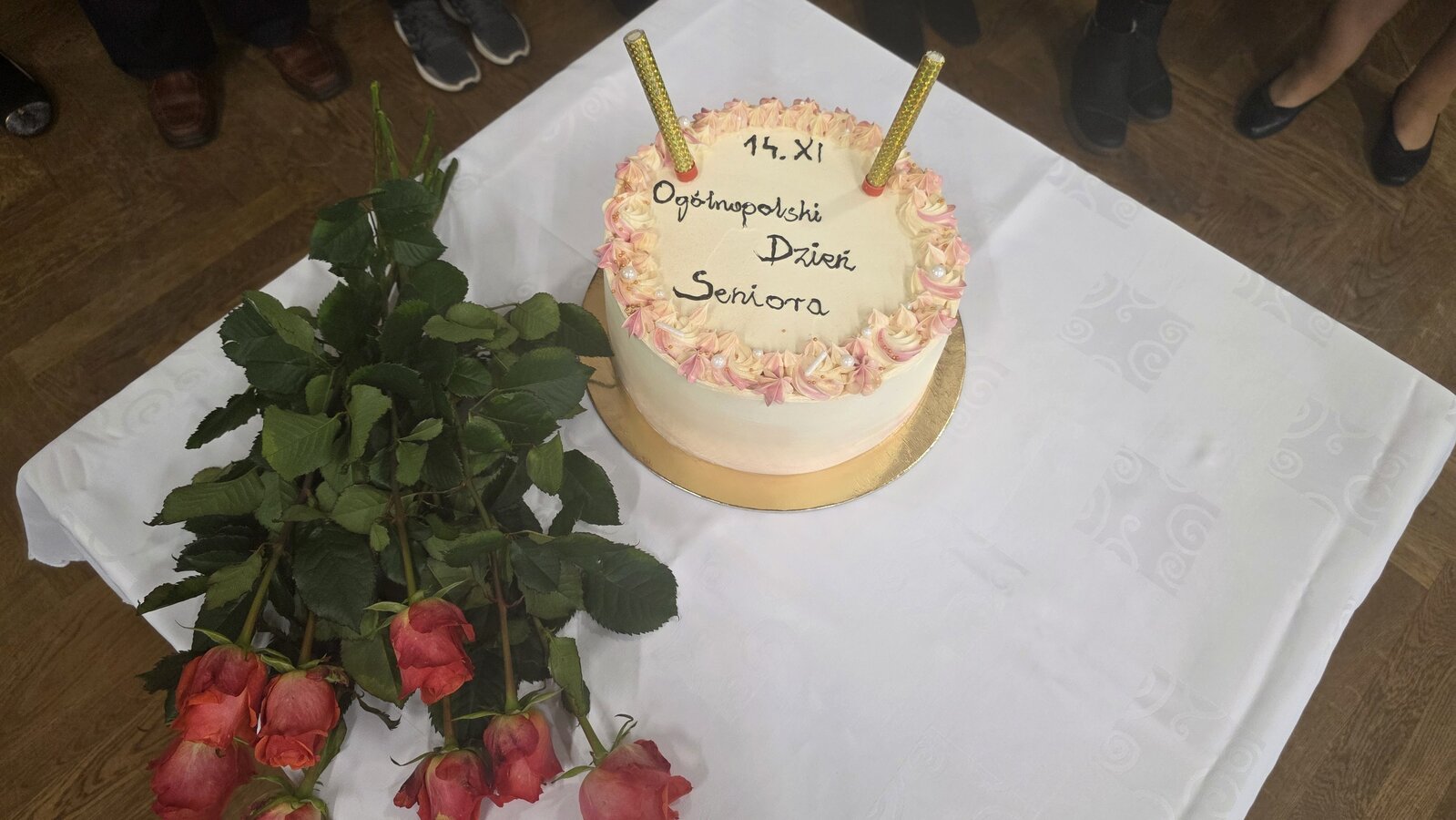 Pani dyrektor, Dorota Wolniczak złożyła Seniorom życzenia, a wszyscy odśpiewali gromkie „Sto lat”. Na twarzach Seniorów pojawiło się wzruszenie i ogromny uśmiech. Przedszkolaki wręczyły również gościom róże, a dla wszystkich Seniorów został przygotowany tort, ufundowany przez Radę Rodziców.