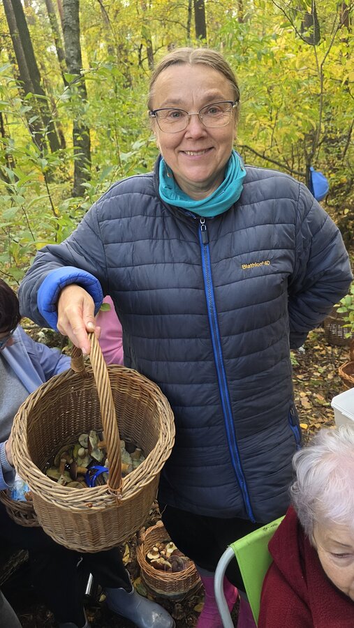Po dotarciu na miejsce, Seniorzy rozeszli się w różne zakątki lasu w poszukiwaniu podgrzybków, borowików, maślaków i …szyszek. Szybko okazało się, że las obfituje w grzyby, bo wszystkie koszyki i wiaderka zapełniały się w ekspresowym tempie.