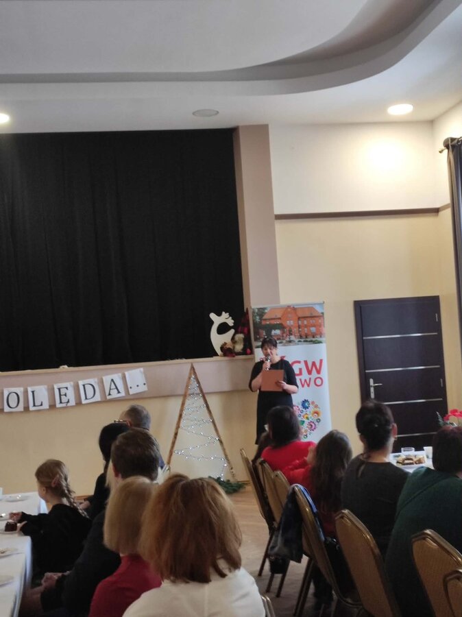 Podczas spotkania zaprezentowano przedstawienie przygotowane przez Panią Izabelę Schmidt, a najmłodsi mieszkańcy gminy wystąpili w przygotowanych rolach aktorskich. Całość dopełniła oprawa muzyczna, która wprowadziła uczestników w świąteczny nastrój.