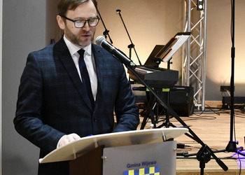 Wójt Gminy Wijewo, Pan Mieczysław Drożdżyński wygłosił przemówienie, w którym mówił o znaczeniu sali WDK w Potrzebowie dla życia kulturalnego gminy oraz złożył podziękowania wszystkim osobom zaangażowanym w realizację inwestycji.