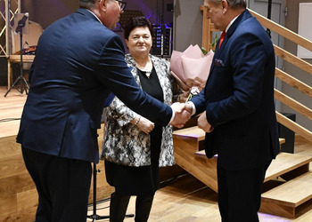 Podziękowania dla Pana Wiesława Szczepańskiego, Sekretarza Stanu w Ministerstwie Spraw Wewnętrznych i Administracji, za wsparcie i pomoc w realizacji przedsięwzięcia oraz dla Pani Marty Żygadło, projektantki, za wkład w projektowanie i realizację inwestycji wręczył Wójt, Pan Mieczysław Drożdżyński wraz z Przewodniczącą Rady Gminy, Panią Maria Rąk.