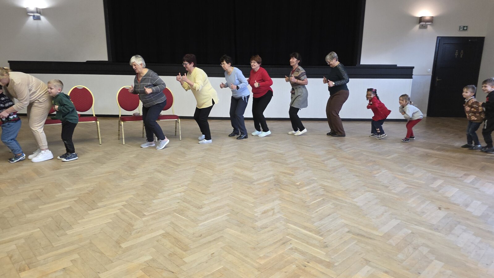 Panie wychowawczynie przygotowały dla Seniorek i dzieci wiele zadań. Były zabawy ruchowe, wyścigi rzędów oraz tańce i śpiew. Wszyscy doskonale sobie radzili z wyzwaniami, pomagając sobie i dopingując. Było wiele śmiechu i wyśmienitej zabawy.