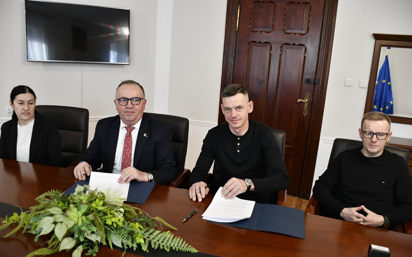 W dniu 10.03.2026 r. Wójt Gminy Wijewo, Pan Mieczysław Drożdżyński i Skarbnik Gminy, Pani Ilona Giera spotkali się z Prezesem Klubu Tenisa Stołowego Wijewo, Panem Tomaszem Skrzypczakiem oraz Skarbnikiem Klubu, Panem Robertem Piotrowskim. Celem spotkania było podpisanie umowy, na podstawie której Gmina Wijewo przekaże dotację w wysokości 8.000,00 zł. Środki te będą przeznaczone na realizację zadania pod tytułem: „Szkolenie techniki gry w tenisa stołowego oraz organizacja i udział dzieci i młodzieży w rozgrywkach ligowych i turniejach tenisa stołowego.”