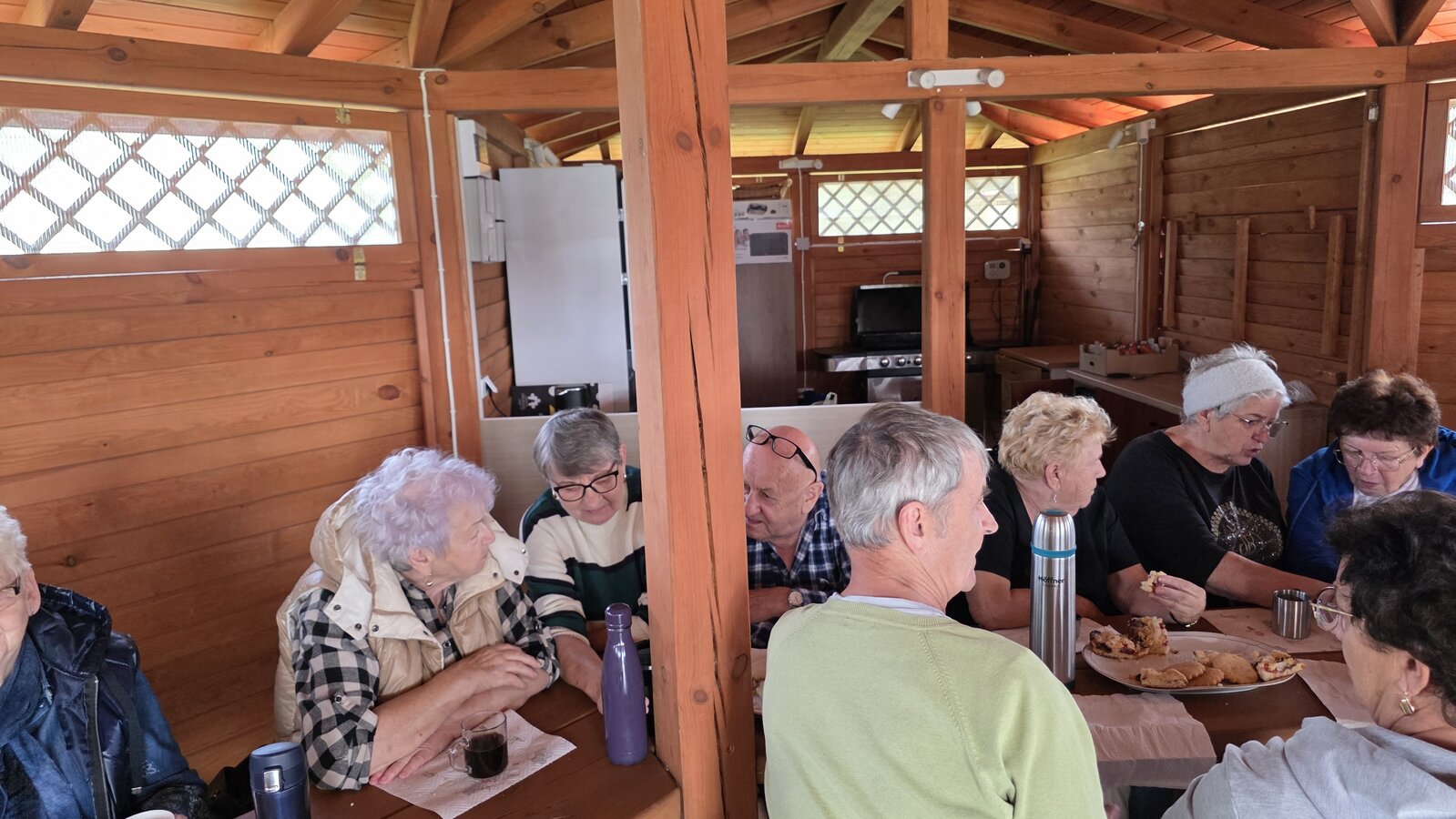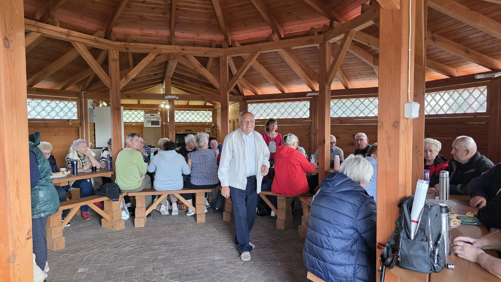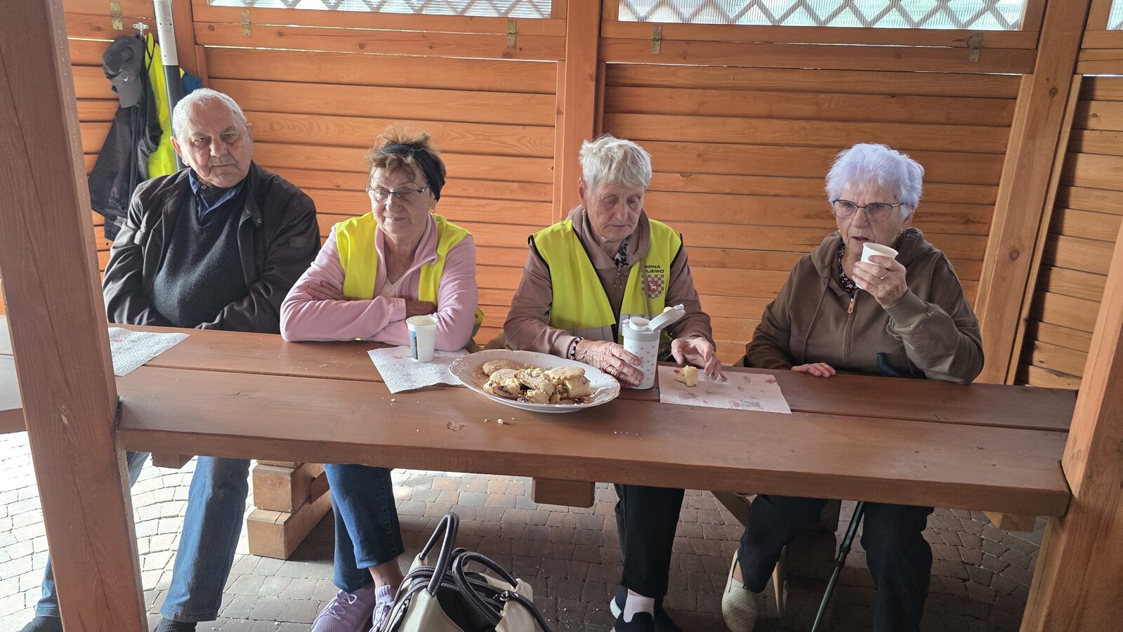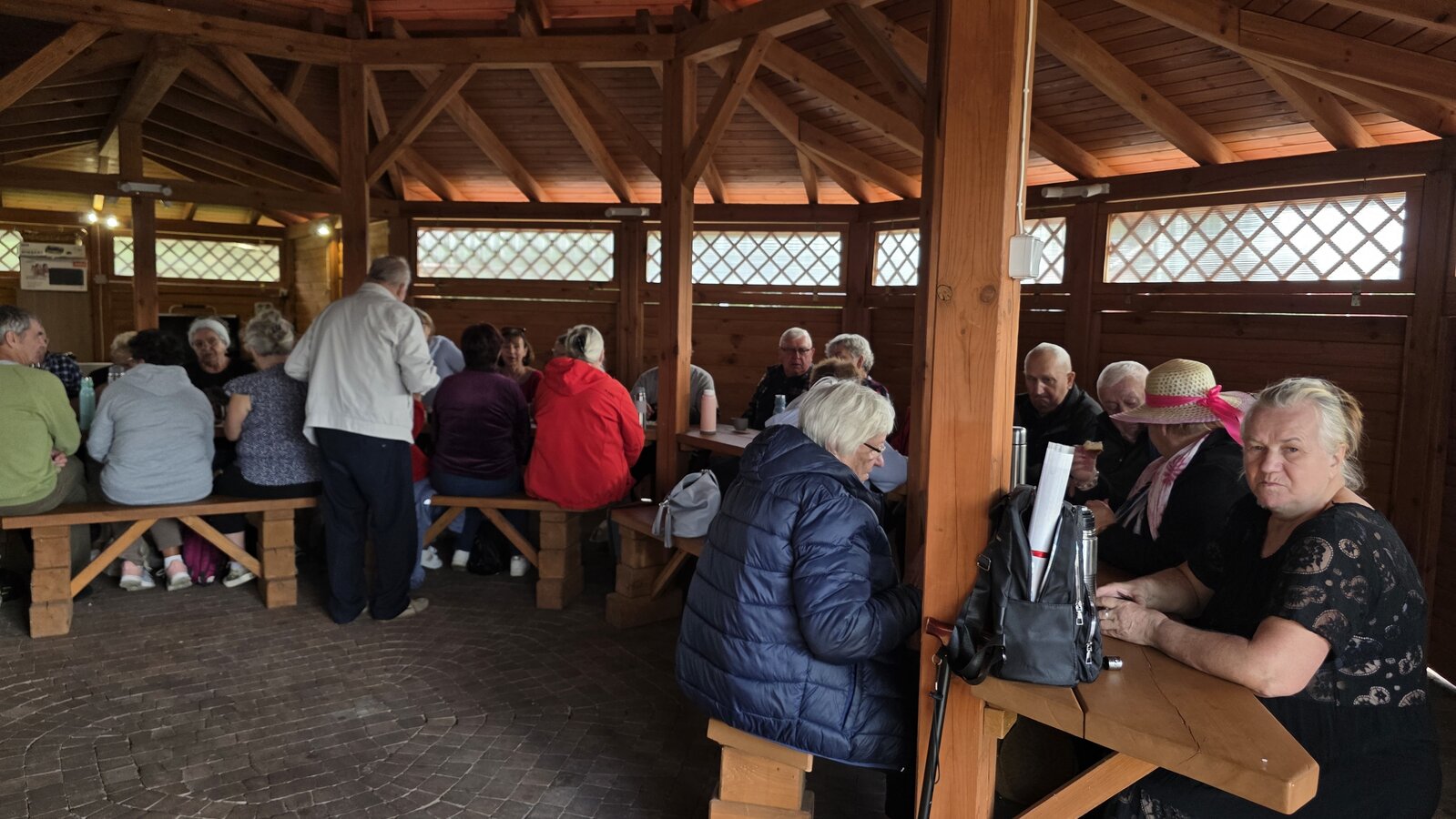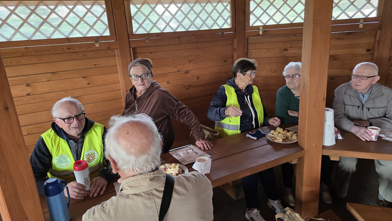 We wtorek 16 września 2025 r. Seniorzy udali się na rowerówkę do Zaborówca. Na miejscu czekali na nas klubowicze z Zaborówca, którzy przygotowali altankę specjalnie na nasze przybycie. Czekało na nas ciasto drożdżowe i kawa. Po poczęstunku pani Ela przygotowała dla nas niespodziankę – szukanie kolorowych muszelek. Oprócz muszelek znalazły się również grzybki. Zwycięzcy poszukiwań otrzymali nagrody – obraz wyklejany diamencikami oraz kartonik pomidorów. Później poszliśmy do Archidiecezjalnego Domu Rekolekcyjnego, gdzie oprowadził nas po nim dyrektor Konrad Perz. Poznaliśmy historię tego miejsca oraz odwiedziliśmy kaplicę św. Urszuli Ledóchowskiej. Na koniec czekał na nas w altance obiad z Kogucika.