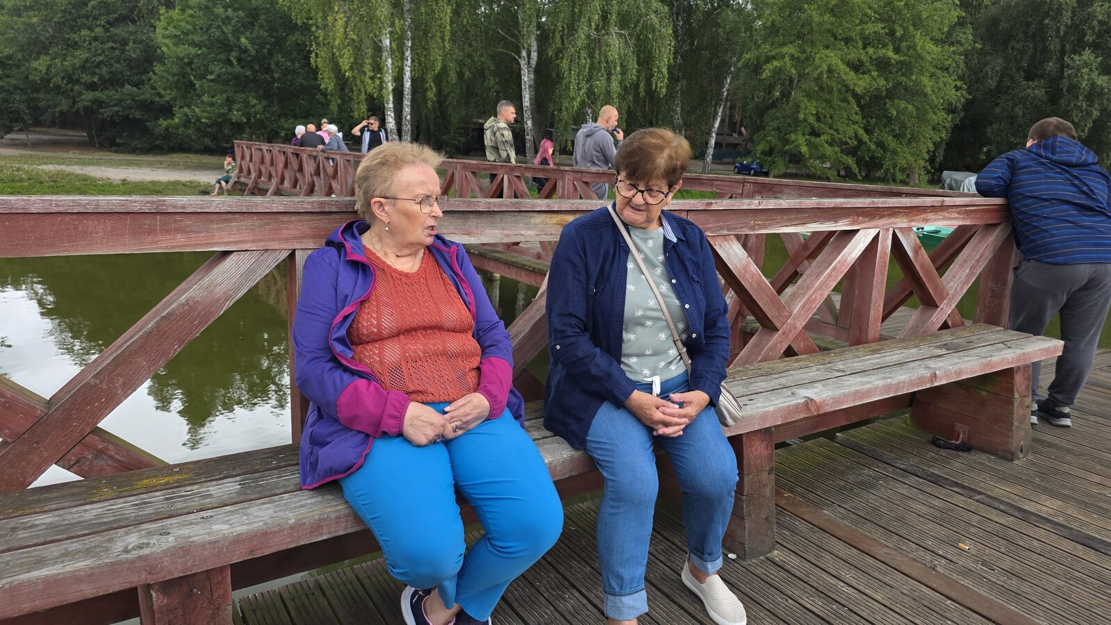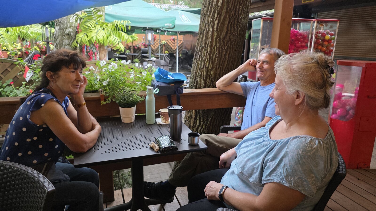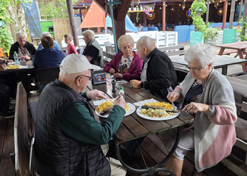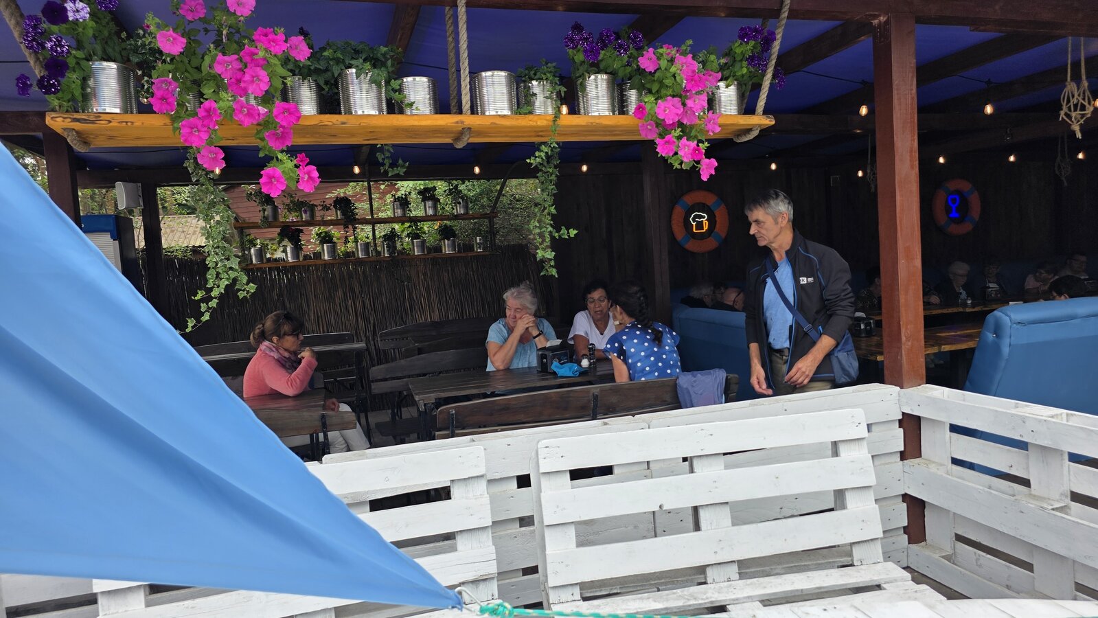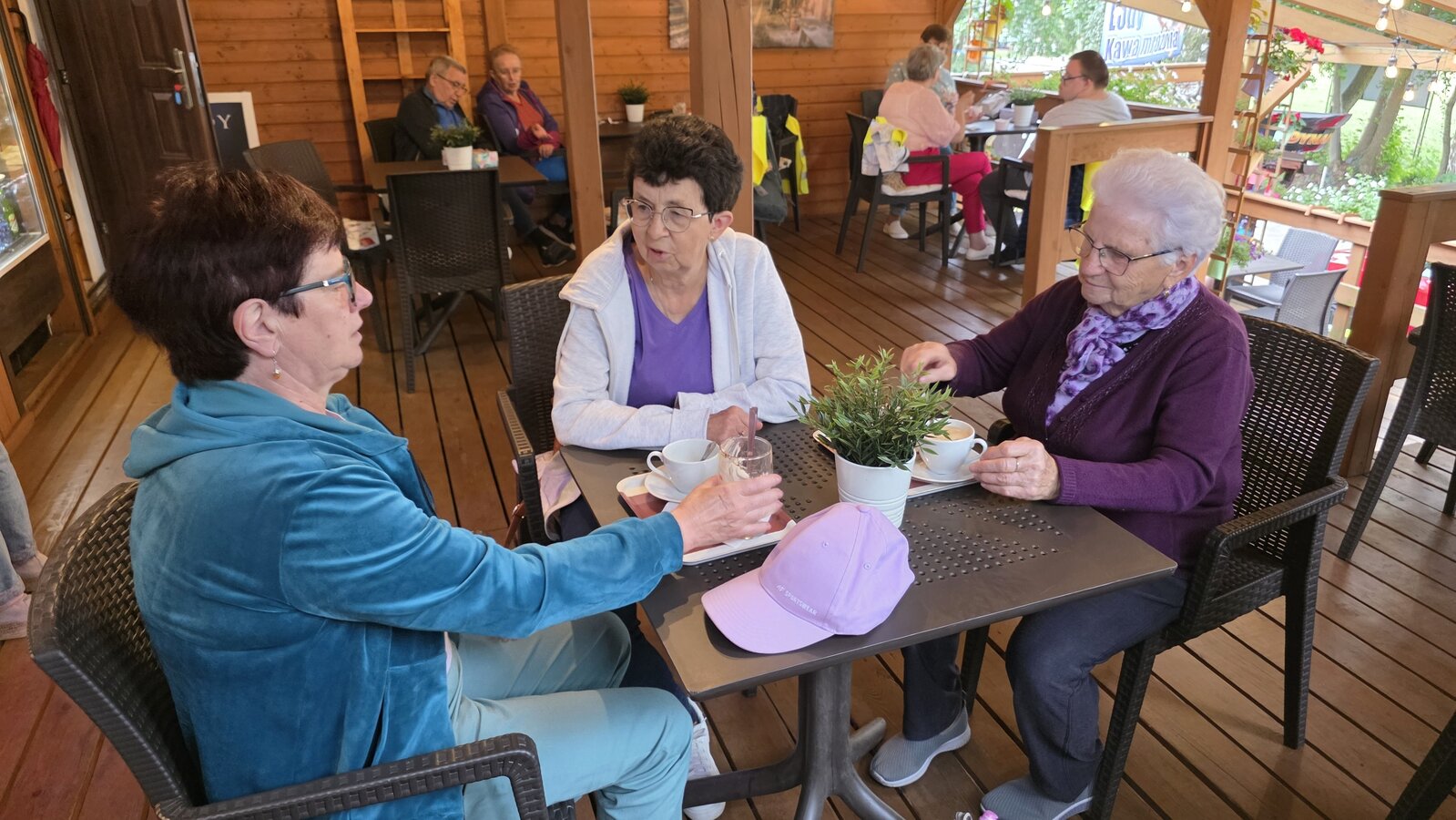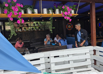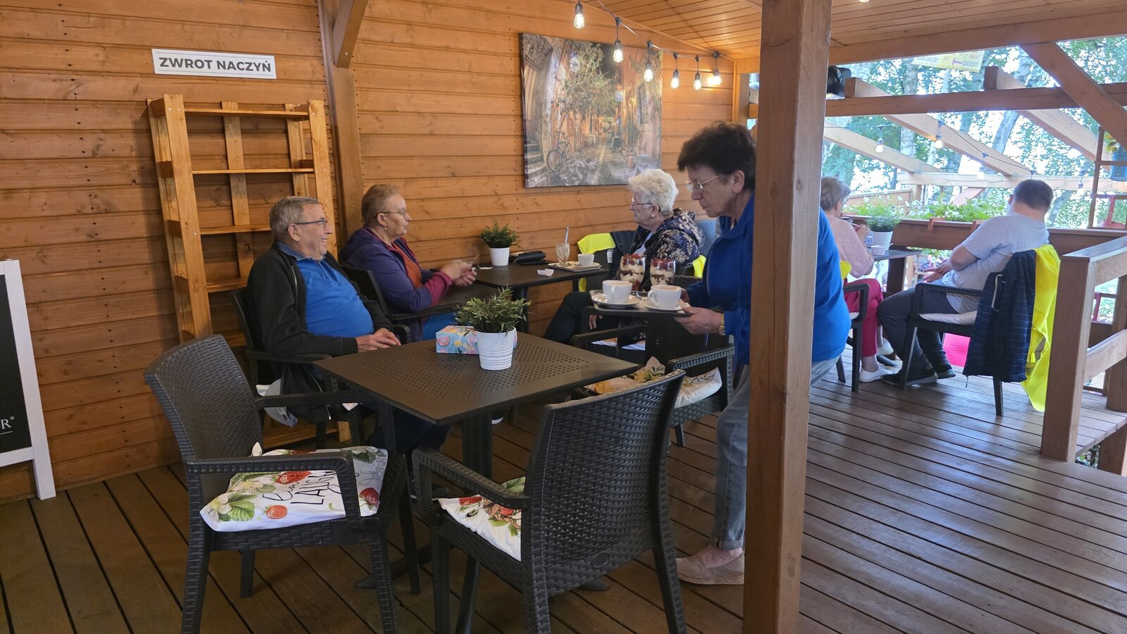 Najpierw jednak przystanęliśmy w Słodkim Zakątku na kawę i ciacho. Zjedliśmy pyszne desery, lody i ciasta. Później była chwila czasu wolnego. Część spędziła go na plaży, inni spacerując po molku a jeszcze inni obserwowali jezioro z ogródków. W końcu przyszedł czas na upragnioną rybkę! Wszyscy ze smakiem ją zajadali a ogromne porcje szokowały naszych Seniorów! Jest to z pewnością najlepsza ryba w naszej okolicy! Polecamy wszystkim!