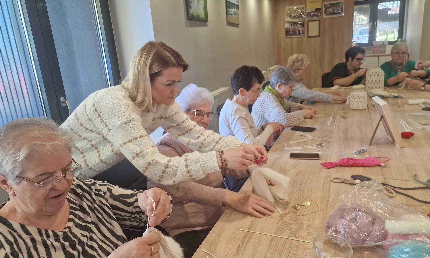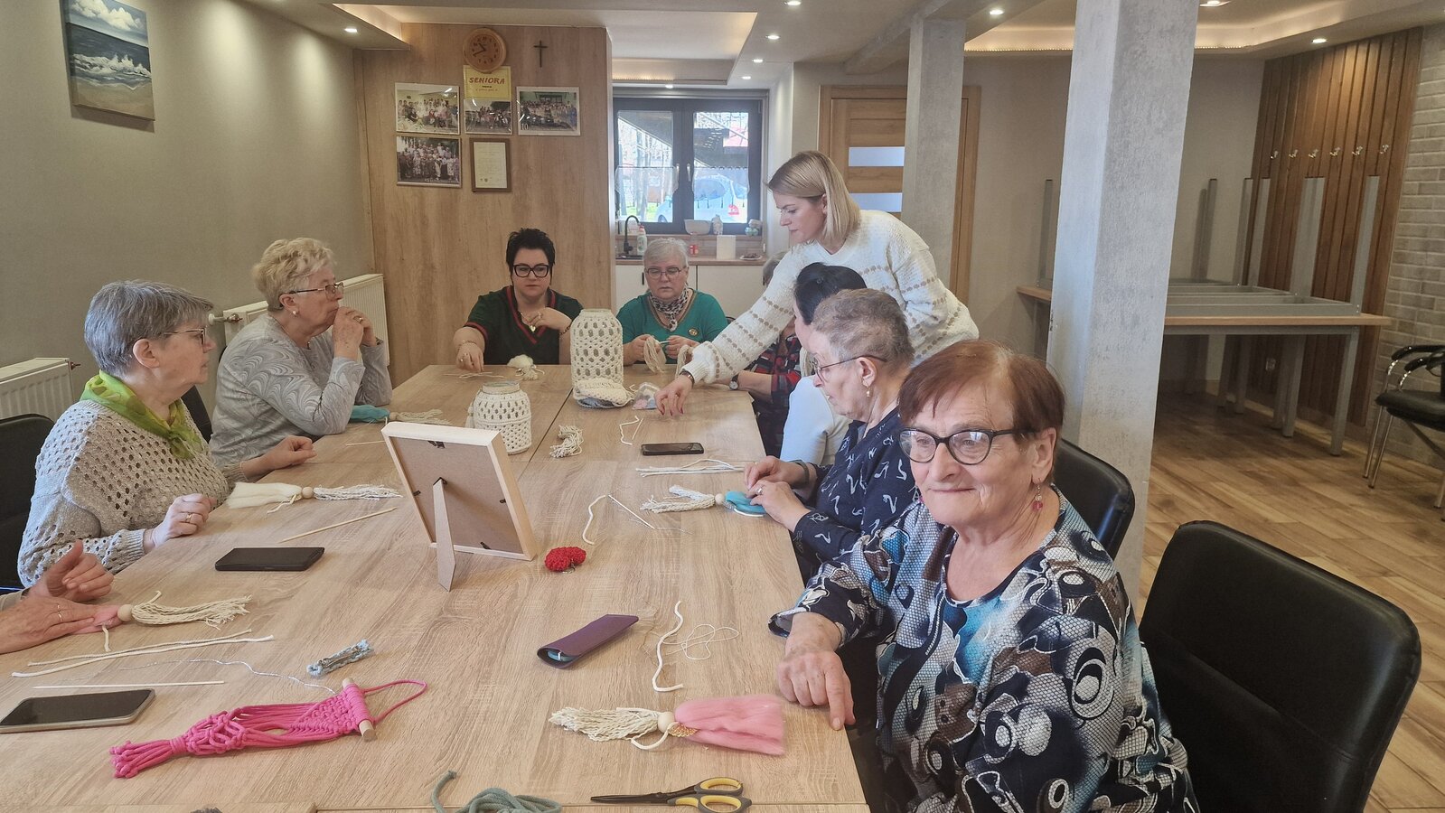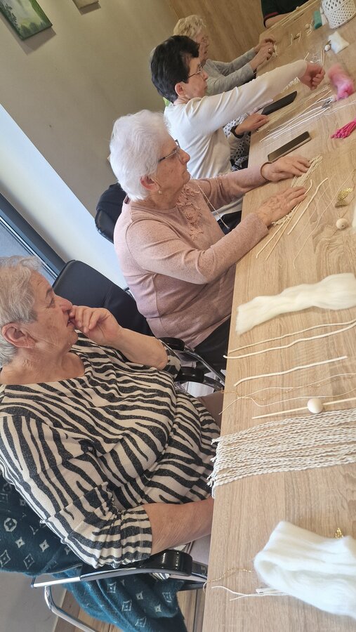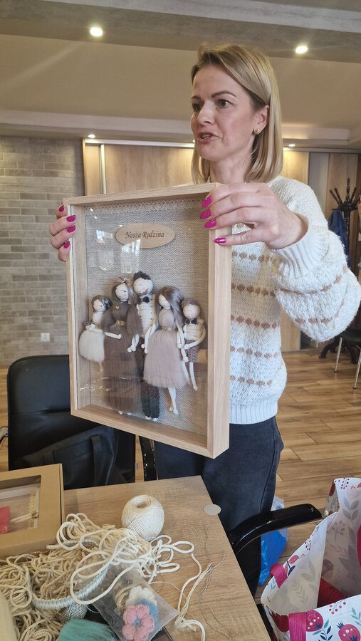 We wtorek, 8 kwietnia 2025 r., w naszym Klubie gościliśmy niezwykłą osobę – panią Ritę Kruk, znaną ze swojego talentu oraz niezwykłych umiejętności artystkę rękodzieła. Spotkanie rozpoczęło się od prezentacji prac pani Rity – różnego rodzaju makramy, torebki, lampiony, opaski na głowę, kolczyki oraz aniołki i rodzinki. Wszyscy uczestnicy warsztatów byli zachwyceni tym, co zobaczyli.