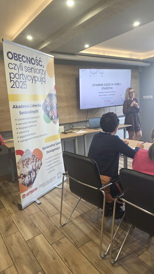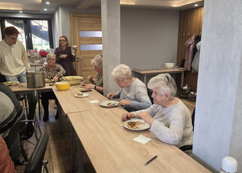 W środę, 12 listopada 2025, w naszym Klubie w ramach projektu ”Obecność, czyli Seniorzy partycypują!” odbyła się inicjatywa zorganizowana przez panią Renatę i panią Anielę. Były to warsztaty kulinarne z dietetyczką, panią Anetą Tomczak – Gorzelniak, połączone z wykładem specjalistki na temat żywienia osób w wieku starszym. Gościem był Wójt Mieczysław Drożdżyński oraz mentor naszych Seniorek Konrad Żukowski.