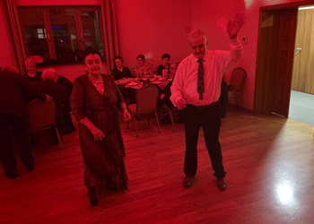 Wśród Seniorów byli również zaproszeni goście: Wójt Gminy Wijewo, Mieczysław Drożdżyński z małżonką, Zastępca Wójta, Waldemar Skrzypczak z małżonką oraz Przewodnicząca Rady Gminy Wijewo Maria Rąk z mężem, którzy złożyli Seniorom życzenia z okazji Dnia Seniora. Do tańca przygrywał Dj Tomasz Brzeziński, który rozpalił parkiet do czerwoności! W obsłudze imprezy pomogły panie z zarządu KGW Wijewo. Parkiet od samego początku był pełen. Seniorzy świetnie bawili się w swoim towarzystwie, a dodatkowym atutem była idealnie dobrana muzyka. Na wszystkich gości czekała wspaniała niespodzianka, jaką była wizyta pani Magdy Klamki, która w naszym Klubie prowadzi gimnastykę. Pani Magda razem z Seniorami zatańczyła trzy układy taneczne, których nauczyli się podczas zajęć. Program zrobił furorę! Kolejną niespodzianką był walczyk czekoladowy.