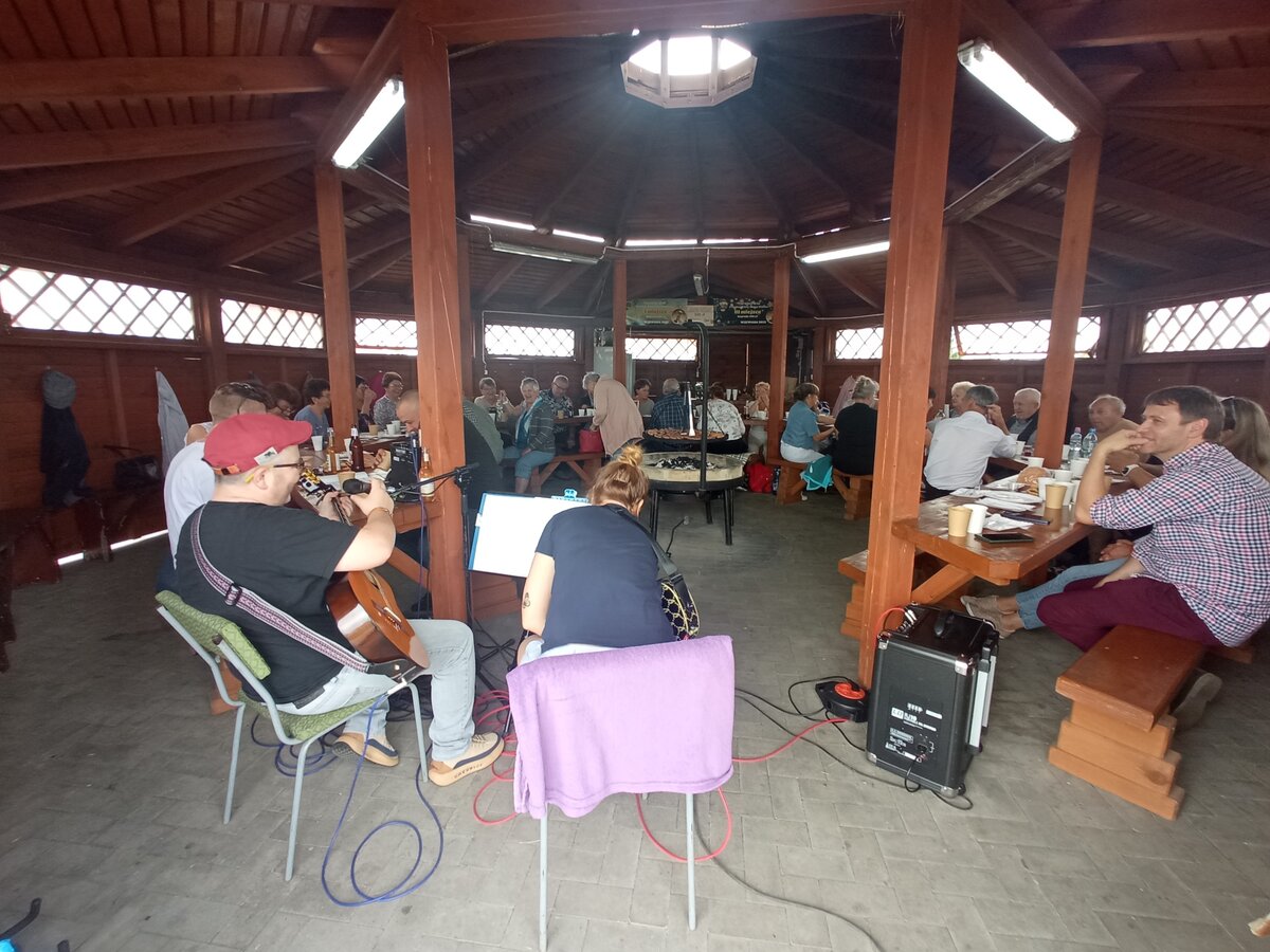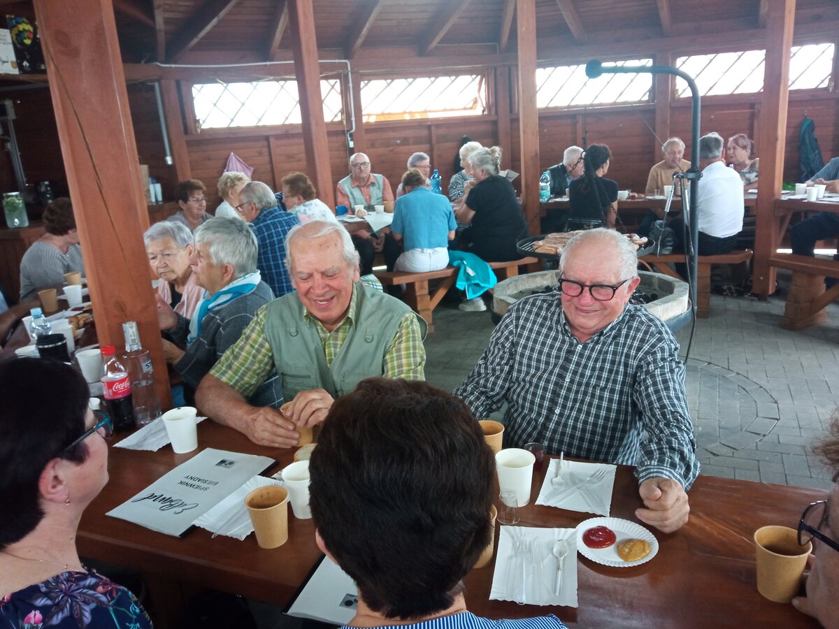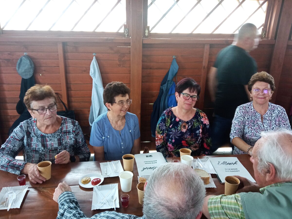 W sobotnie popołudnie, 15 czerwca 2024 roku mieliśmy przyjemność gościć w Potrzebowie na Seniorskiej Czerwcówce. We współpracy z Sołectwem Potrzebowo oraz zespołem EdBand z panem Edwardem Nyczko na czele, zorganizowaliśmy wspaniałą biesiadę ze śpiewem i pieczoną kiełbaską. Gośćmi na tej biesiadzie byli Wójt Gminy Wijewo pan Mieczysław Drożdżyński, Sekretarz Gminy Wijewo pani Aneta Bajon oraz Dyrektor Gminnego Ośrodka Kultury pan Leszek Bajon. Impreza była przednia! Pan Edward razem ze swoją ekipą przygotowali śpiewniki a także ciasteczka do kawy i pyszną lemoniadę. Seniorzy natomiast zadbali o kiełbaski, chlebek oraz ciepłe napoje. Pogoda była idealna do biesiadowania! Było mnóstwo rozmów, śmiechu, śpiewu oraz zabawy! Oczywiście nie zabrakło chwili na zrobienie pamiątkowego wspólnego zdjęcia. Zabawiliśmy się również w zwierciadło, które niesie za sobą ogrom śmiechu!