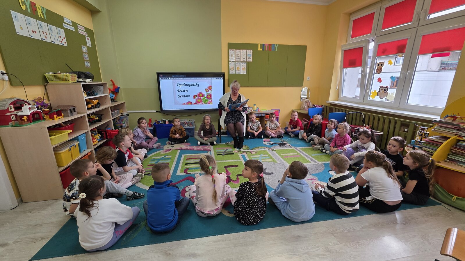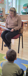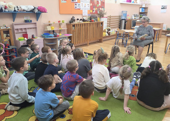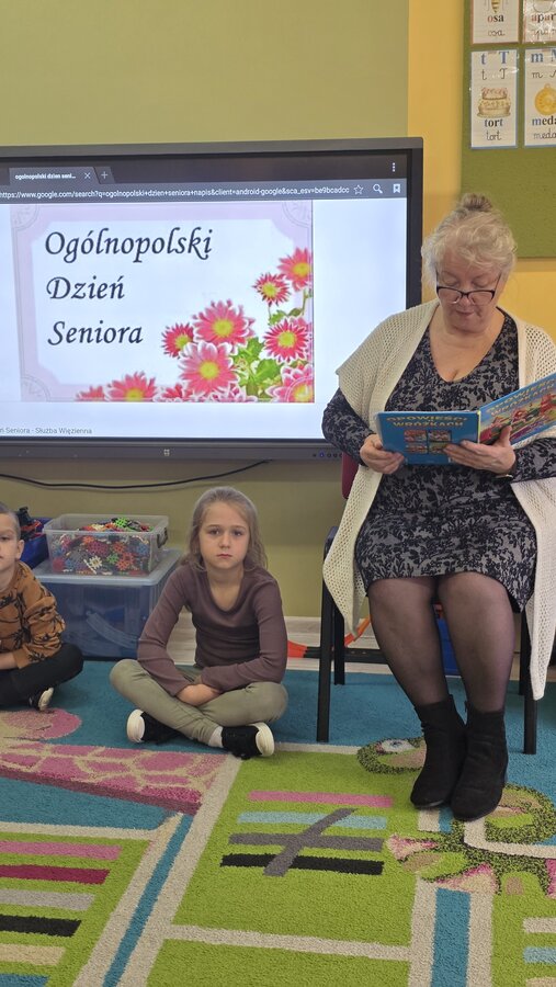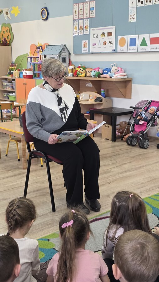 Czytanie bajek w przedszkolu oraz zorganizowany przez nich Dzień Seniora
