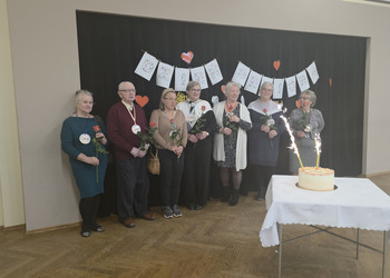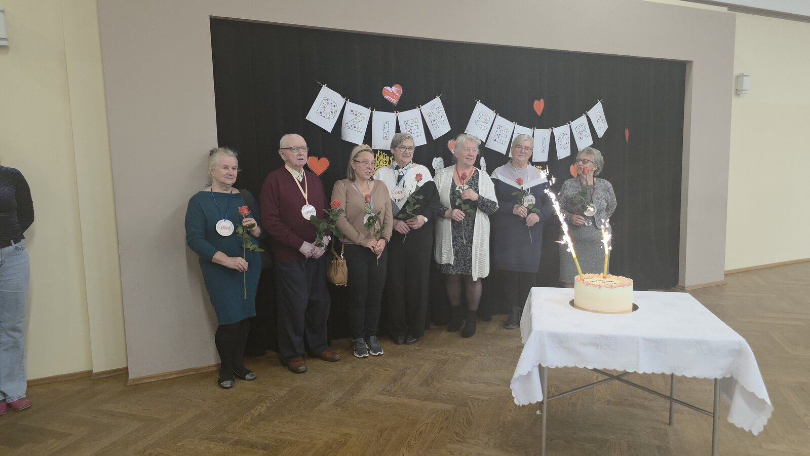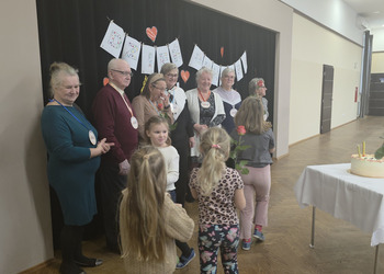 Pani dyrektor, Dorota Wolniczak złożyła Seniorom życzenia, a wszyscy odśpiewali gromkie „Sto lat”. Na twarzach Seniorów pojawiło się wzruszenie i ogromny uśmiech. Przedszkolaki wręczyły również gościom róże, a dla wszystkich Seniorów został przygotowany tort, ufundowany przez Radę Rodziców.