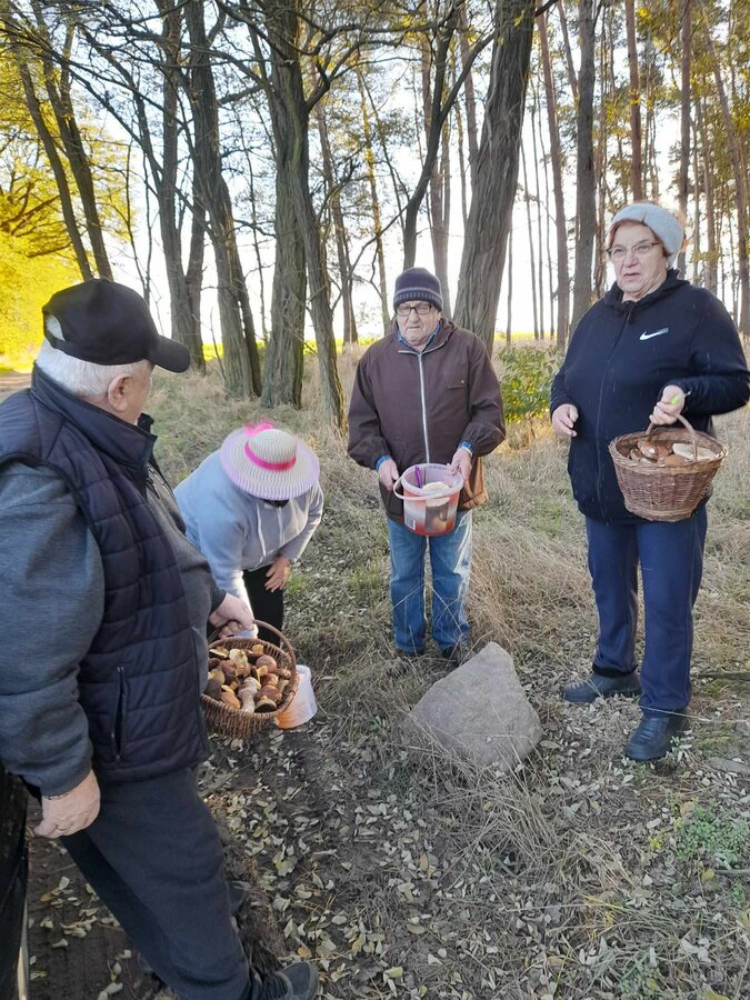 13 listopada 2023 grupa Seniorów z Klubu Seniora w Gminie Wijewo pojechała na grzyby do lasów w Wijewie. Ostatnim razem grzybów szukaliśmy w deszczu, a teraz świeciło piękne słońce i wiał chłodny wiatr. Atmosfera była bardzo radosna i rodzinna. Koszyki i wiaderka bardzo szybko się zapełniły, więc po zrobieniu wspólnego pamiątkowego zdjęcia pojechaliśmy do Klubu ogrzać się i wypić kawę.