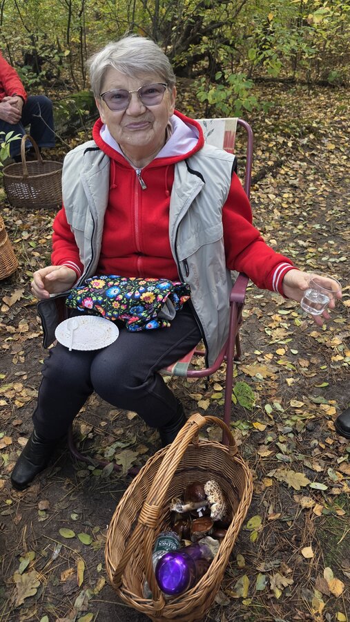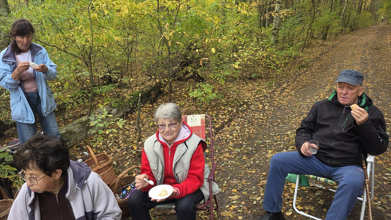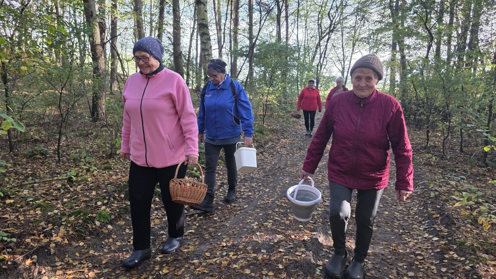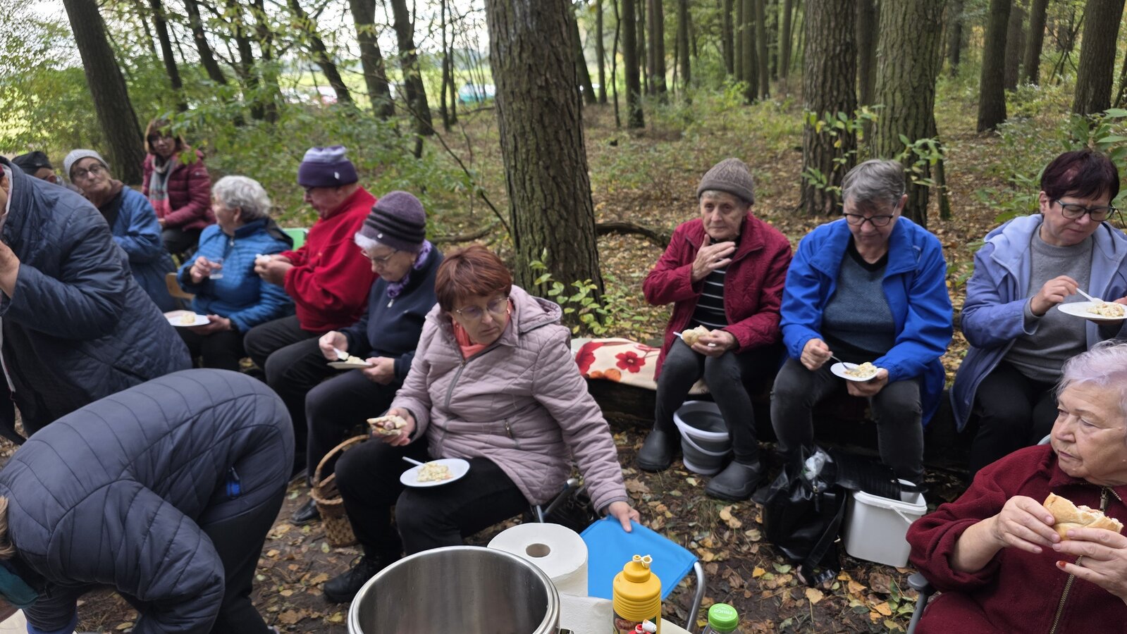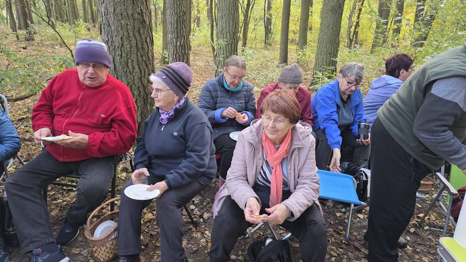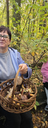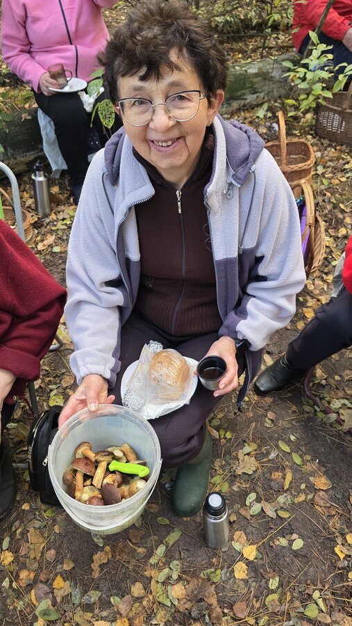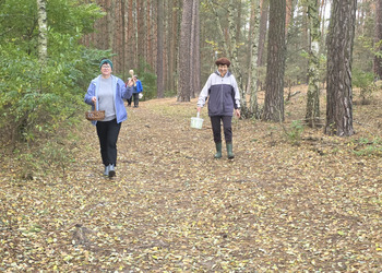 Po dotarciu na miejsce, Seniorzy rozeszli się w różne zakątki lasu w poszukiwaniu podgrzybków, borowików, maślaków i …szyszek. Szybko okazało się, że las obfituje w grzyby, bo wszystkie koszyki i wiaderka zapełniały się w ekspresowym tempie.