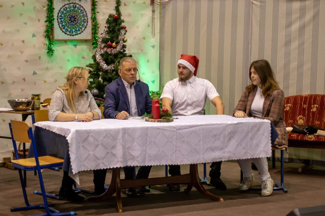 Prapremiera odbyła się właśnie w Zespole Szkół w Sławie 21 grudnia 2023 roku. Emocji było mnóstwo, ale wszystko się udało i nasza „Opowieść wigilijna” wywołała pozytywne reakcje, za co serdecznie dziękujemy!