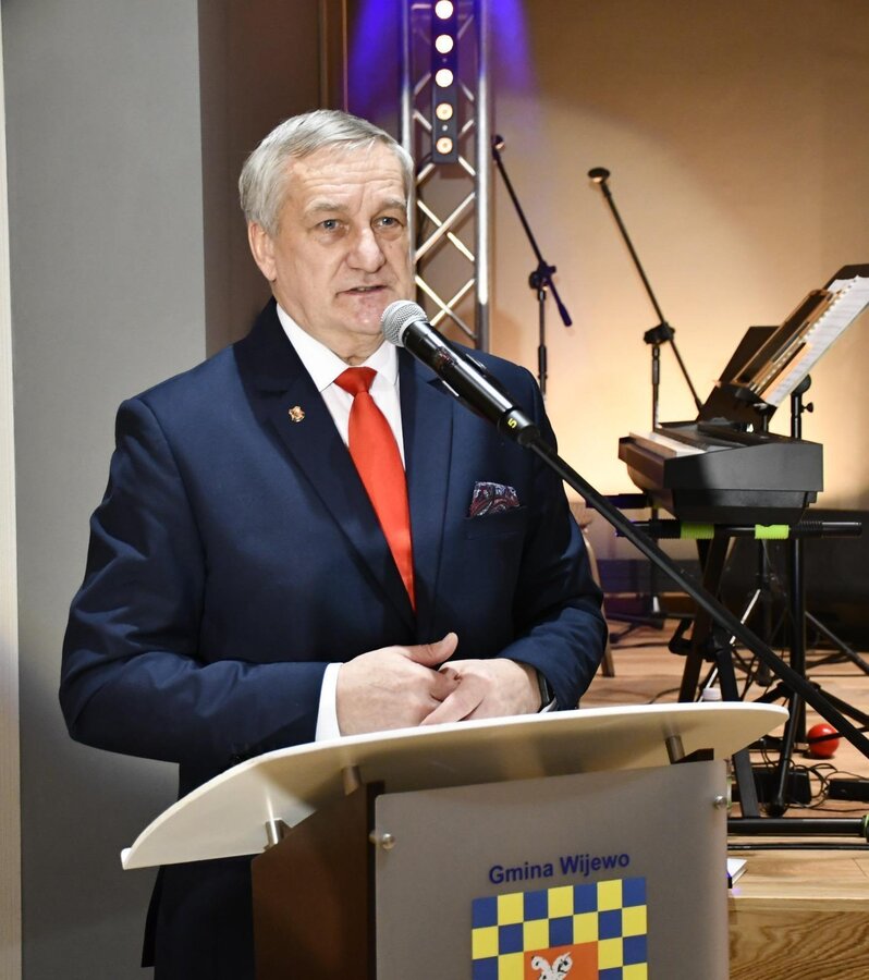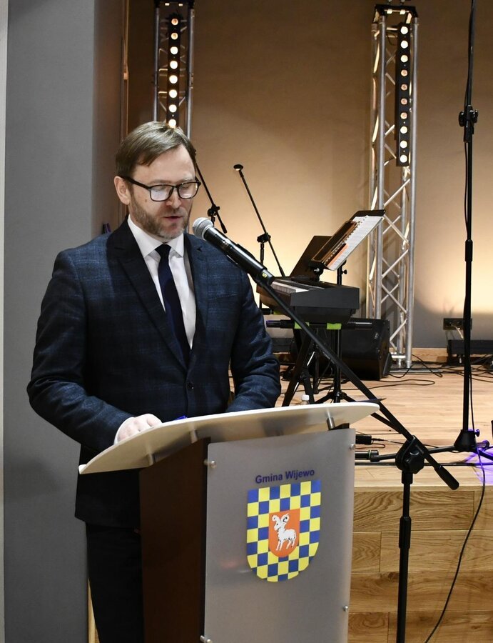 Wójt Gminy Wijewo, Pan Mieczysław Drożdżyński wygłosił przemówienie, w którym mówił o znaczeniu sali WDK w Potrzebowie dla życia kulturalnego gminy oraz złożył podziękowania wszystkim osobom zaangażowanym w realizację inwestycji.