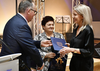 Podziękowania dla Pana Wiesława Szczepańskiego, Sekretarza Stanu w Ministerstwie Spraw Wewnętrznych i Administracji, za wsparcie i pomoc w realizacji przedsięwzięcia oraz dla Pani Marty Żygadło, projektantki, za wkład w projektowanie i realizację inwestycji wręczył Wójt, Pan Mieczysław Drożdżyński wraz z Przewodniczącą Rady Gminy, Panią Maria Rąk.