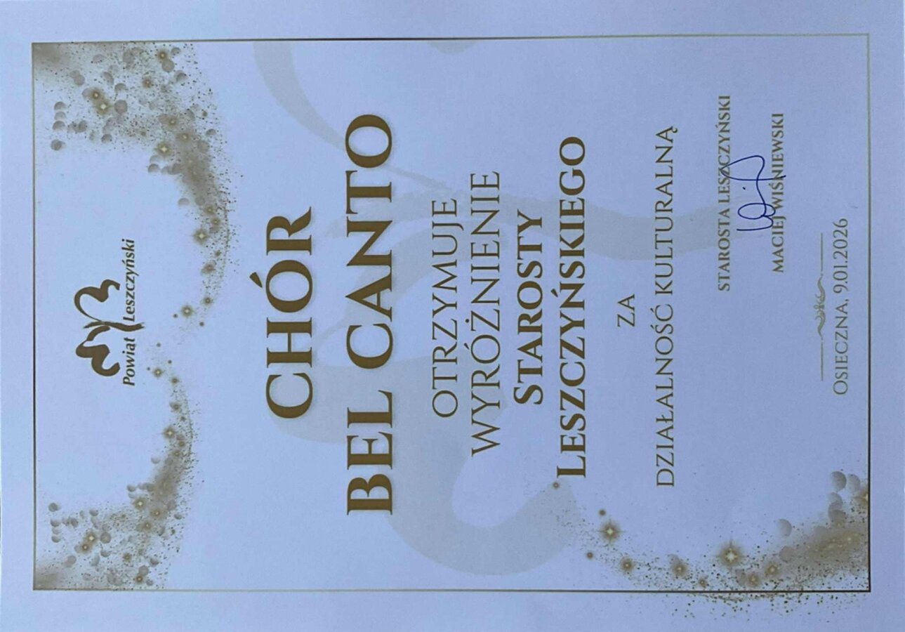 Nagroda Starosty Leszczyńskiego dla Chóru Bel Canto