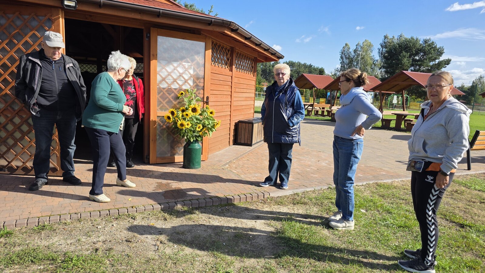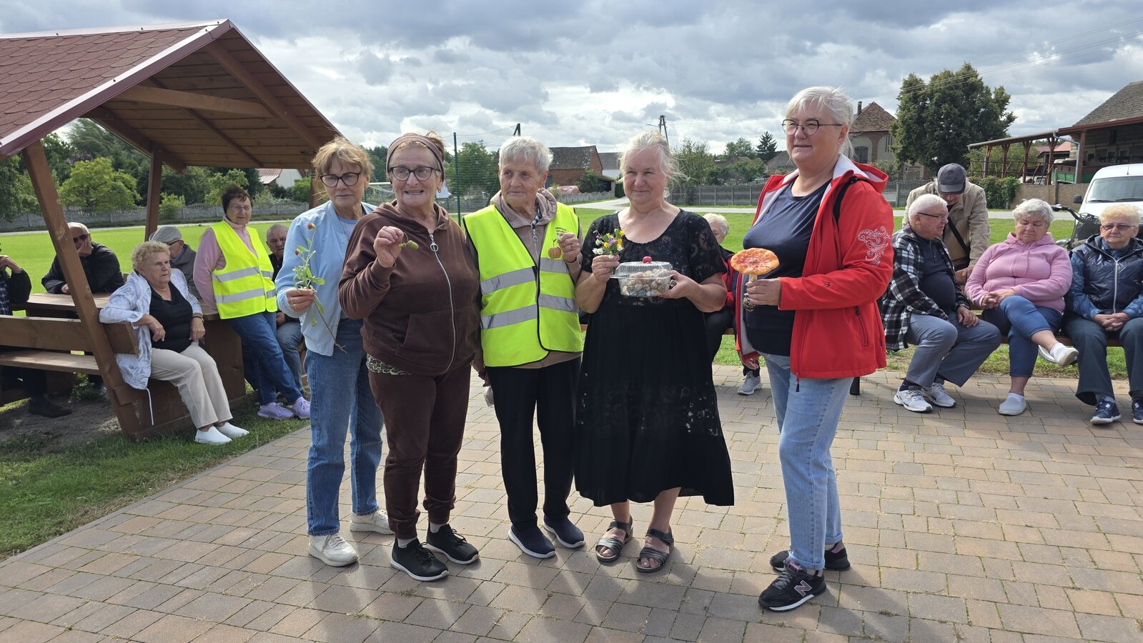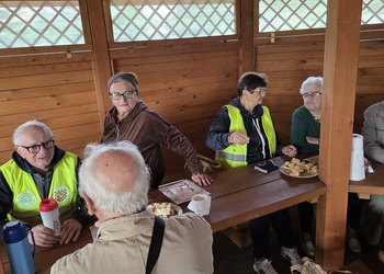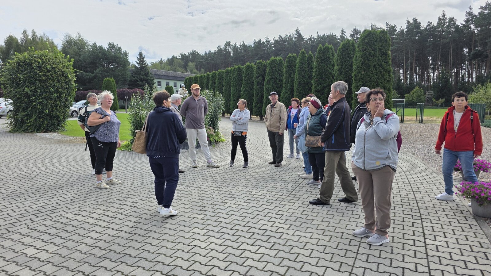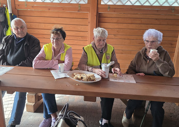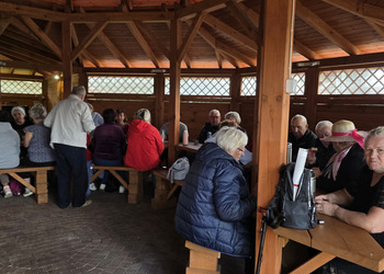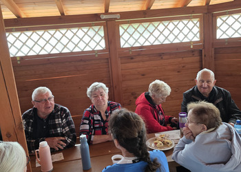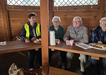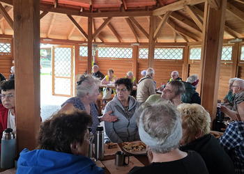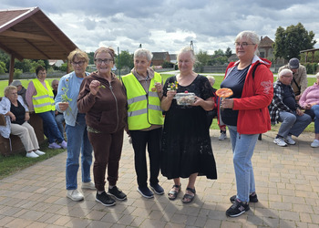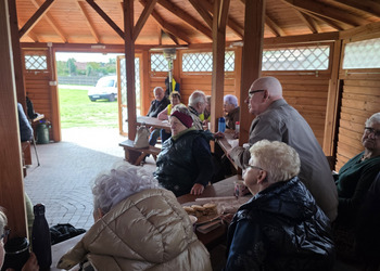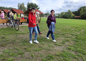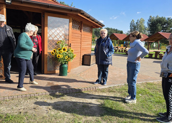 We wtorek 16 września 2025 r. Seniorzy udali się na rowerówkę do Zaborówca. Na miejscu czekali na nas klubowicze z Zaborówca, którzy przygotowali altankę specjalnie na nasze przybycie. Czekało na nas ciasto drożdżowe i kawa. Po poczęstunku pani Ela przygotowała dla nas niespodziankę – szukanie kolorowych muszelek. Oprócz muszelek znalazły się również grzybki. Zwycięzcy poszukiwań otrzymali nagrody – obraz wyklejany diamencikami oraz kartonik pomidorów. Później poszliśmy do Archidiecezjalnego Domu Rekolekcyjnego, gdzie oprowadził nas po nim dyrektor Konrad Perz. Poznaliśmy historię tego miejsca oraz odwiedziliśmy kaplicę św. Urszuli Ledóchowskiej. Na koniec czekał na nas w altance obiad z Kogucika.
