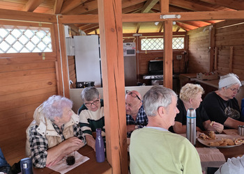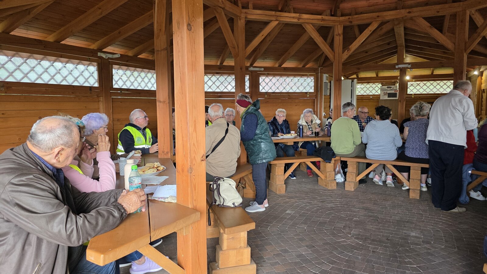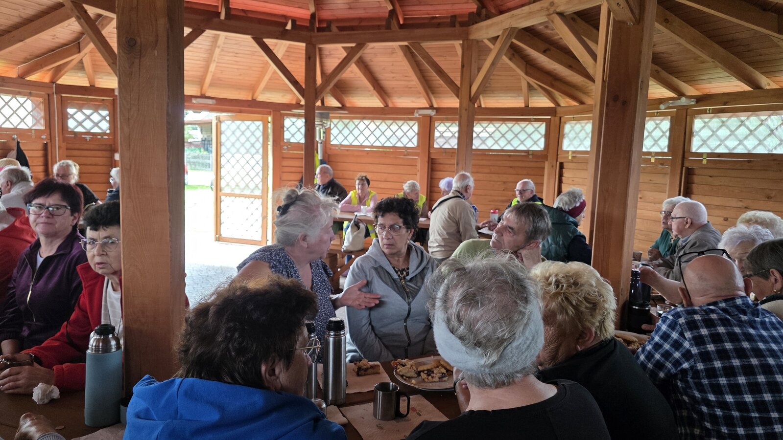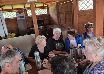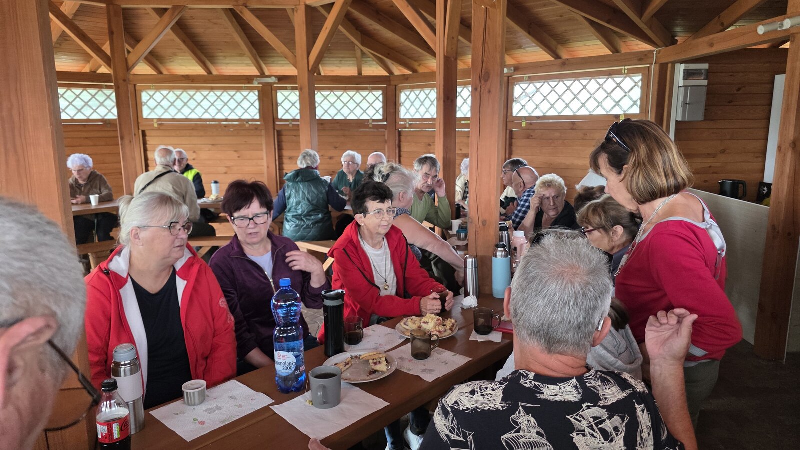 We wtorek 16 września 2025 r. Seniorzy udali się na rowerówkę do Zaborówca. Na miejscu czekali na nas klubowicze z Zaborówca, którzy przygotowali altankę specjalnie na nasze przybycie. Czekało na nas ciasto drożdżowe i kawa. Po poczęstunku pani Ela przygotowała dla nas niespodziankę – szukanie kolorowych muszelek. Oprócz muszelek znalazły się również grzybki. Zwycięzcy poszukiwań otrzymali nagrody – obraz wyklejany diamencikami oraz kartonik pomidorów. Później poszliśmy do Archidiecezjalnego Domu Rekolekcyjnego, gdzie oprowadził nas po nim dyrektor Konrad Perz. Poznaliśmy historię tego miejsca oraz odwiedziliśmy kaplicę św. Urszuli Ledóchowskiej. Na koniec czekał na nas w altance obiad z Kogucika.