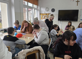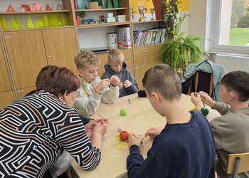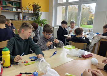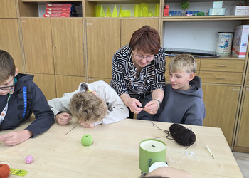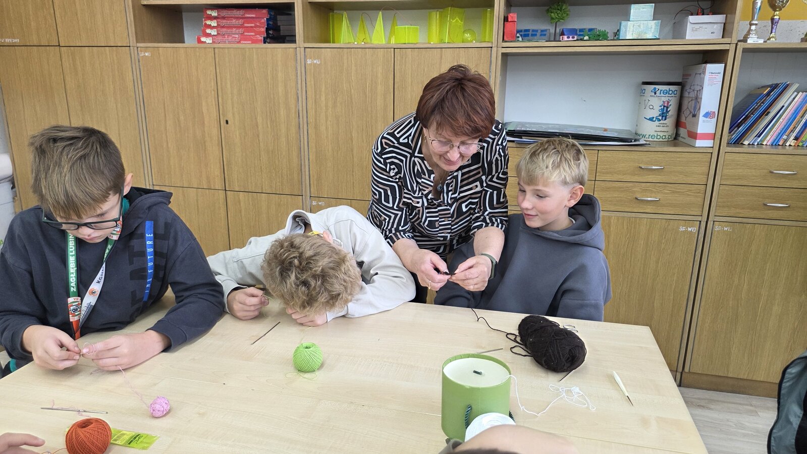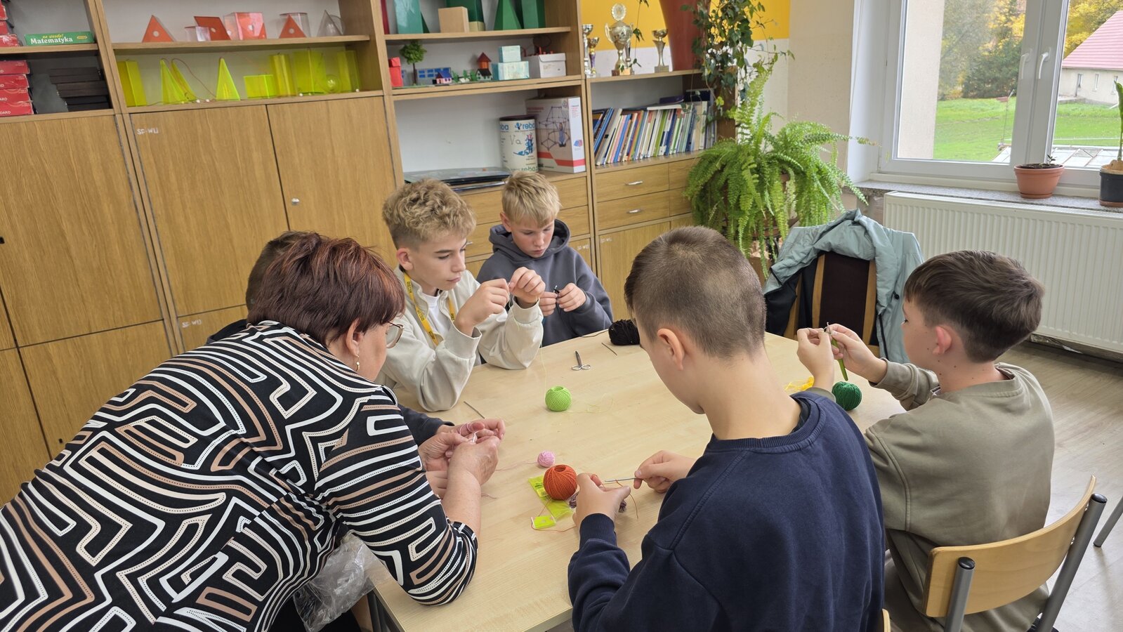Uczniowie byli do zajęć bardzo przygotowani: mieli szydełka, włóczki, kordonki, wełnę. Praca rozpoczęła się od prostego łańcuszka – uczniowie szybko załapali technikę i pięknie sobie radzili. Zarówno chłopcy jak i dziewczęta dali z siebie wszystko! Gratulujemy im ogromnego zaangażowania oraz cierpliwości!