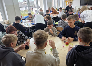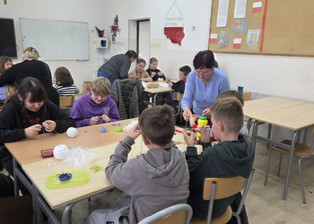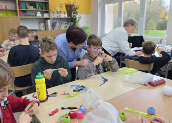 Panie przyniosły ze sobą kilka swoich prac, które bardzo zaciekawiły uczniów. Padały pytania, jak długo robi się takie cudeńka.