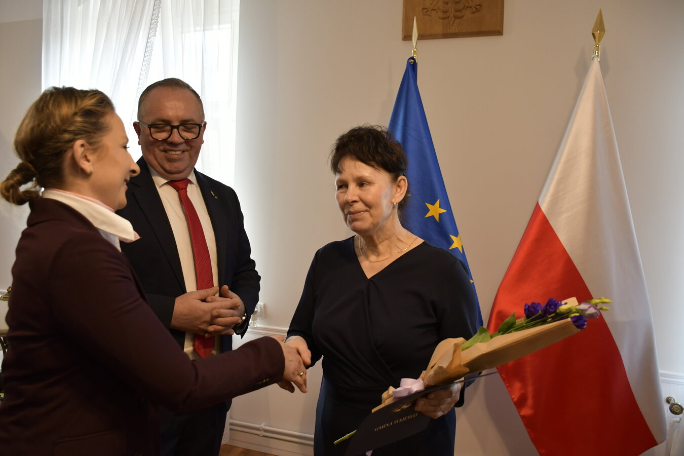 Podczas spotkania Wójt Gminy Wijewo, Pan Mieczysław Drożdżyński, Zastępca Wójta, Pan Waldemar Skrzypczak oraz Sekretarz Gminy, Pani Aneta Bajon wręczyli kwiaty, podziękowania i serdeczne życzenia.