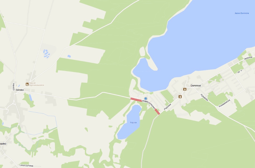 Informujemy, że w związku z rozpoczęciem robót budowlanych polegających na budowie sieci wodociągowo-kanalizacyjnej w Dominicach (ul. Wypoczynkowa), nastąpi czasowe zamknięcie drogi gminnej Dominice - Górsko.
