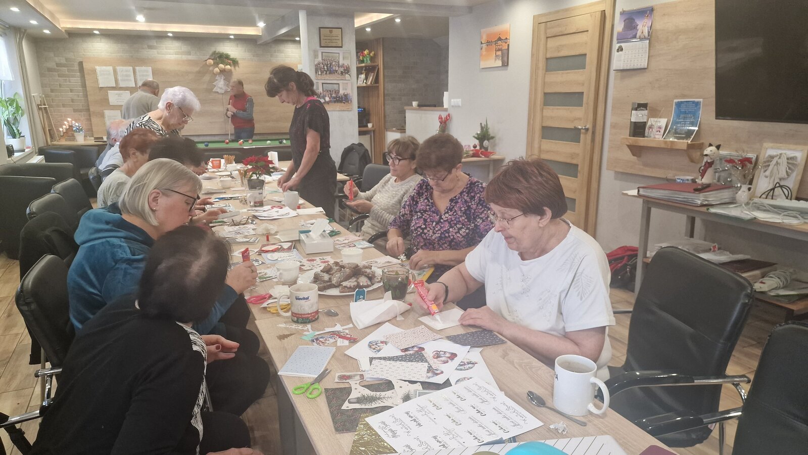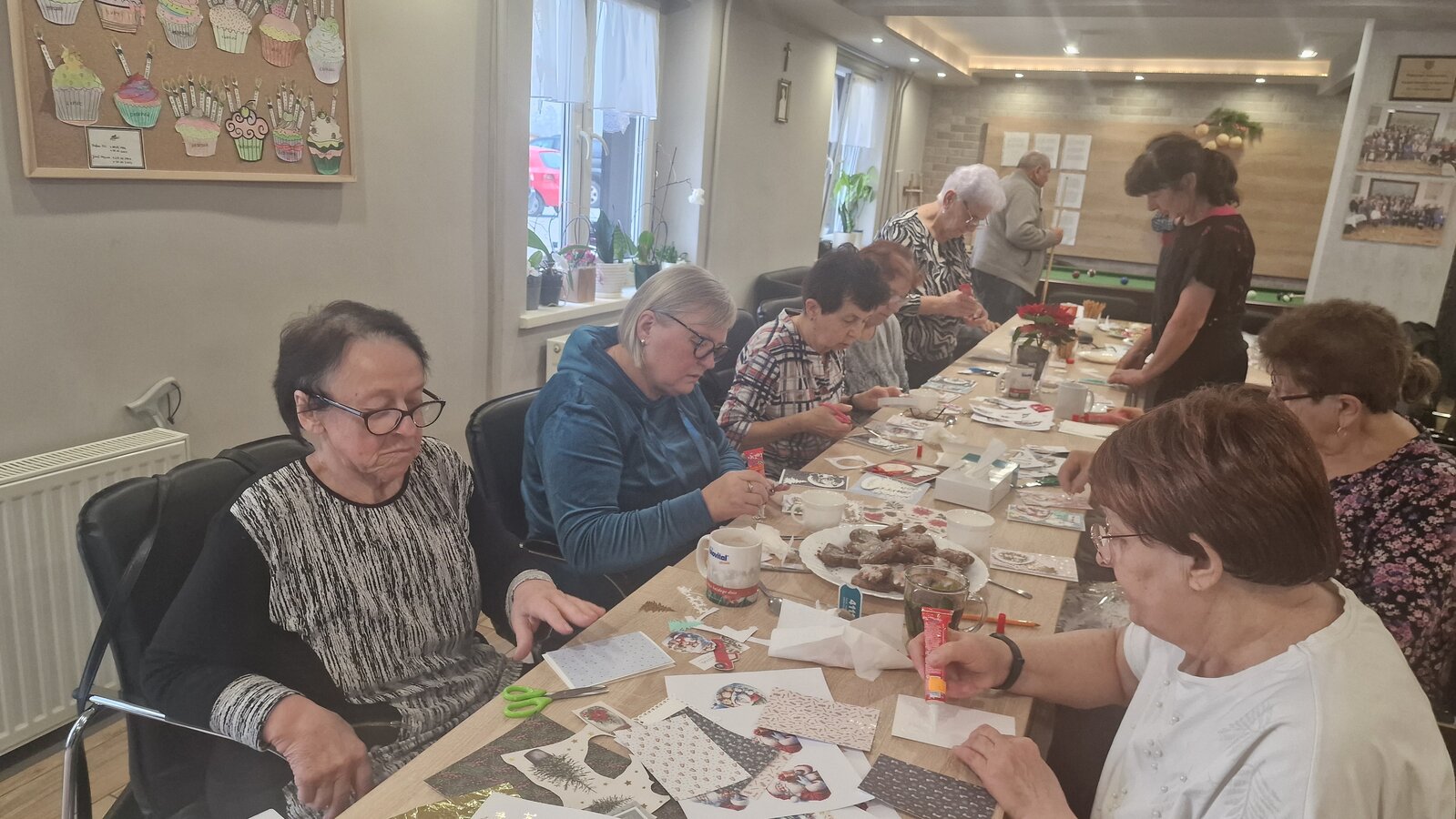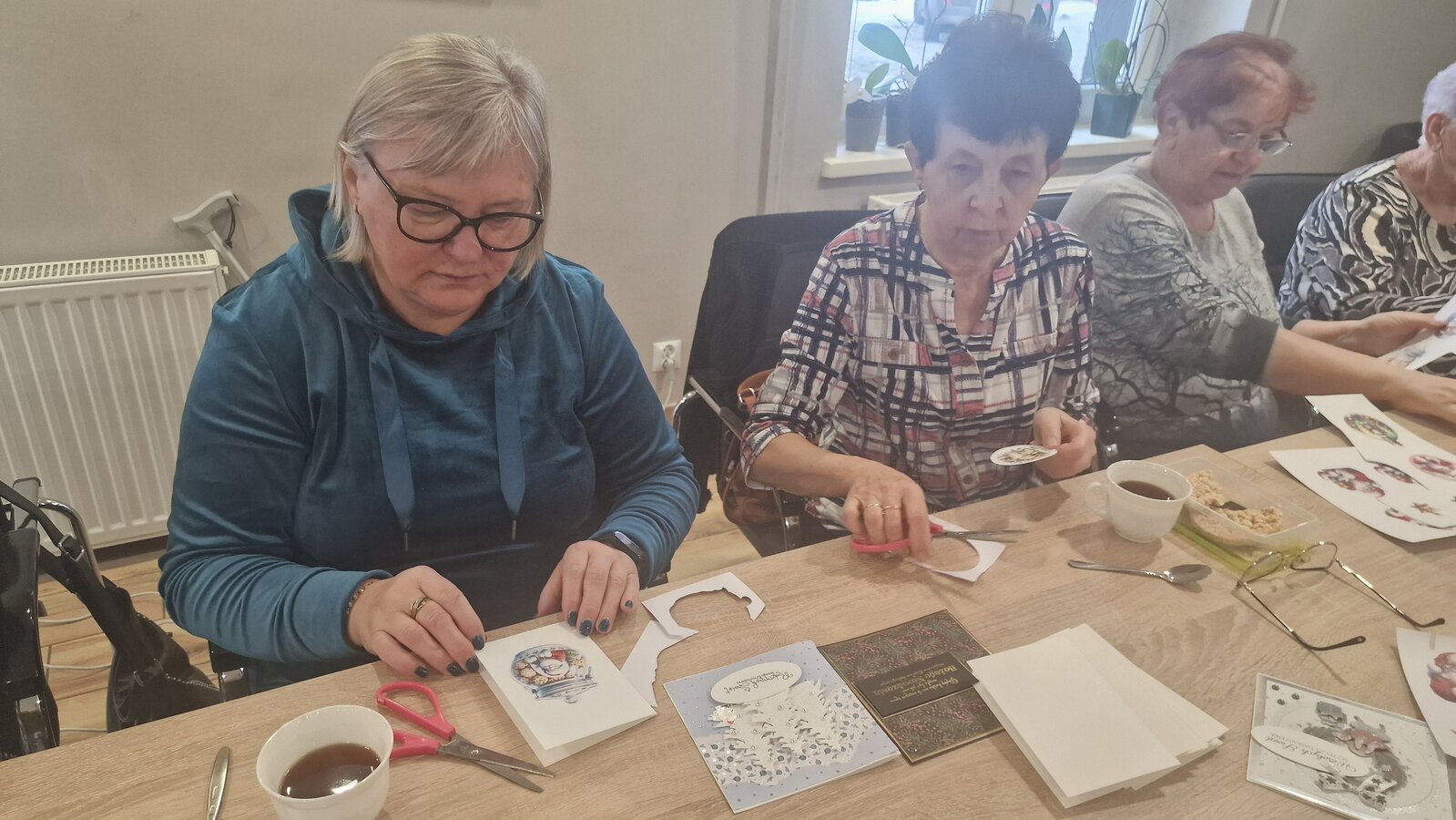 Na warsztatach pojawili się licznie zebrani Seniorzy, którzy próbowali swoich sił, tworząc piękne kartki, które będą mogli wysłać swoim bliskim.