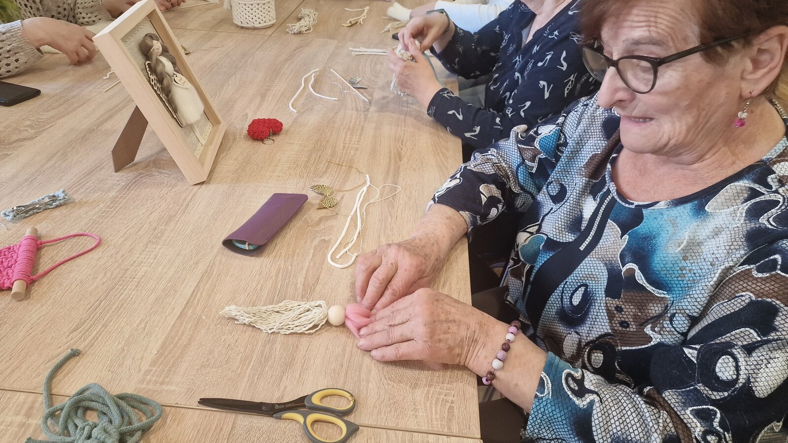 We wtorek, 8 kwietnia 2025 r., w naszym Klubie gościliśmy niezwykłą osobę – panią Ritę Kruk, znaną ze swojego talentu oraz niezwykłych umiejętności artystkę rękodzieła. Spotkanie rozpoczęło się od prezentacji prac pani Rity – różnego rodzaju makramy, torebki, lampiony, opaski na głowę, kolczyki oraz aniołki i rodzinki. Wszyscy uczestnicy warsztatów byli zachwyceni tym, co zobaczyli.