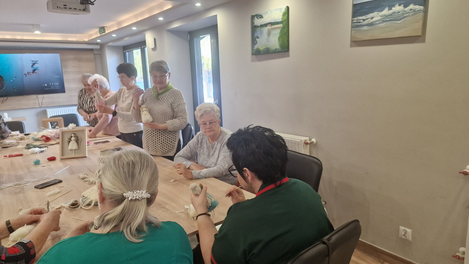 Kolejno każda z osób otrzymała zestaw, za pomocą którego mogła własnoręcznie wykonać aniołka. Z pomocą pani Rity powstały prześliczne aniołki, które będą teraz zdobiły nasze domy.