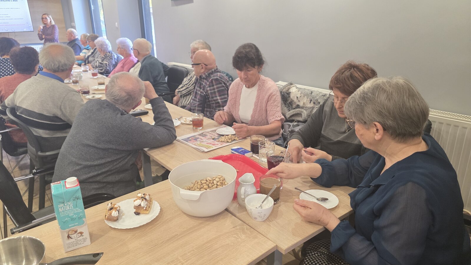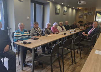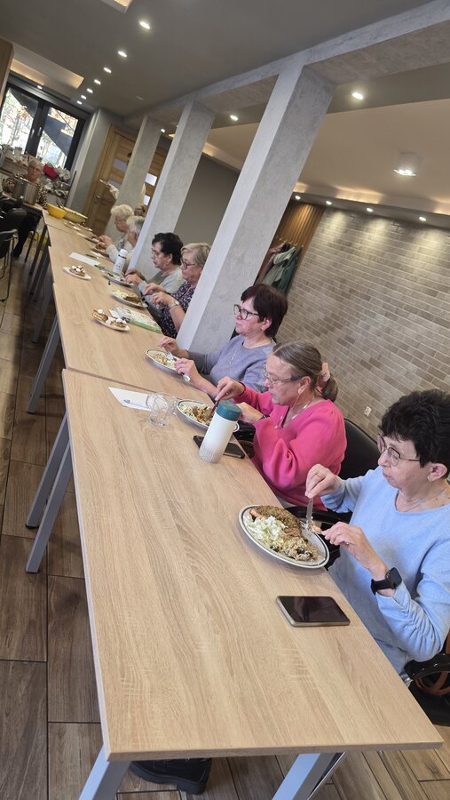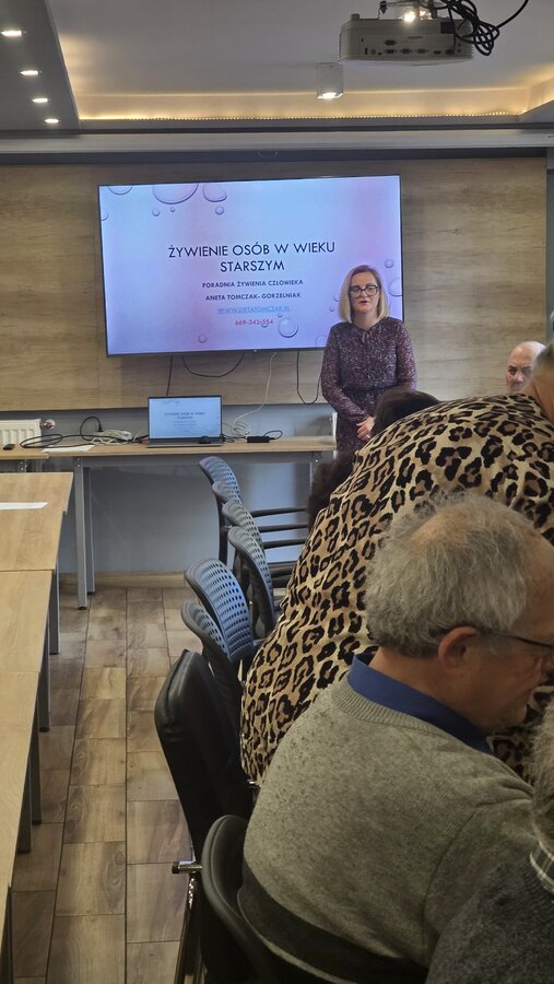 W środę, 12 listopada 2025, w naszym Klubie w ramach projektu ”Obecność, czyli Seniorzy partycypują!” odbyła się inicjatywa zorganizowana przez panią Renatę i panią Anielę. Były to warsztaty kulinarne z dietetyczką, panią Anetą Tomczak – Gorzelniak, połączone z wykładem specjalistki na temat żywienia osób w wieku starszym. Gościem był Wójt Mieczysław Drożdżyński oraz mentor naszych Seniorek Konrad Żukowski.