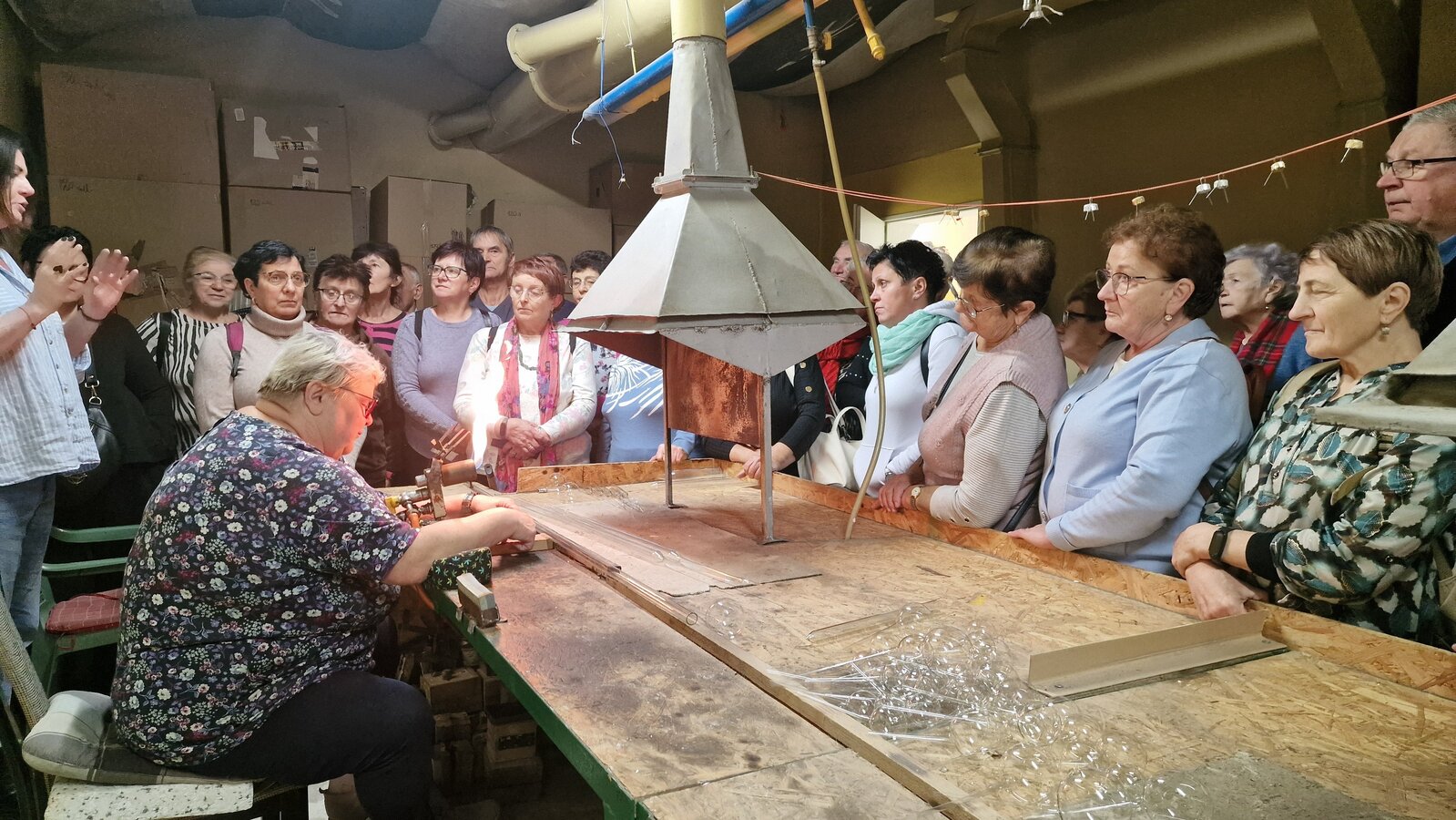 Zwiedzania było bardzo dużo, więc wszyscy zgłodnieli. Po zjedzeniu pysznego obiadu pojechaliśmy do Fabryki Bombek Bolglass. Tam obejrzeliśmy proces powstawania bombek od dmuchania, przez srebrzenie, po dekorowanie. Oczywiście była tez możliwość zakupu bombek na choinkę i nasi Seniorzy chętnie z tej okazji skorzystali. Oprócz tego, każdy uczestnik otrzymał dla siebie bombkę ze swoim imieniem.