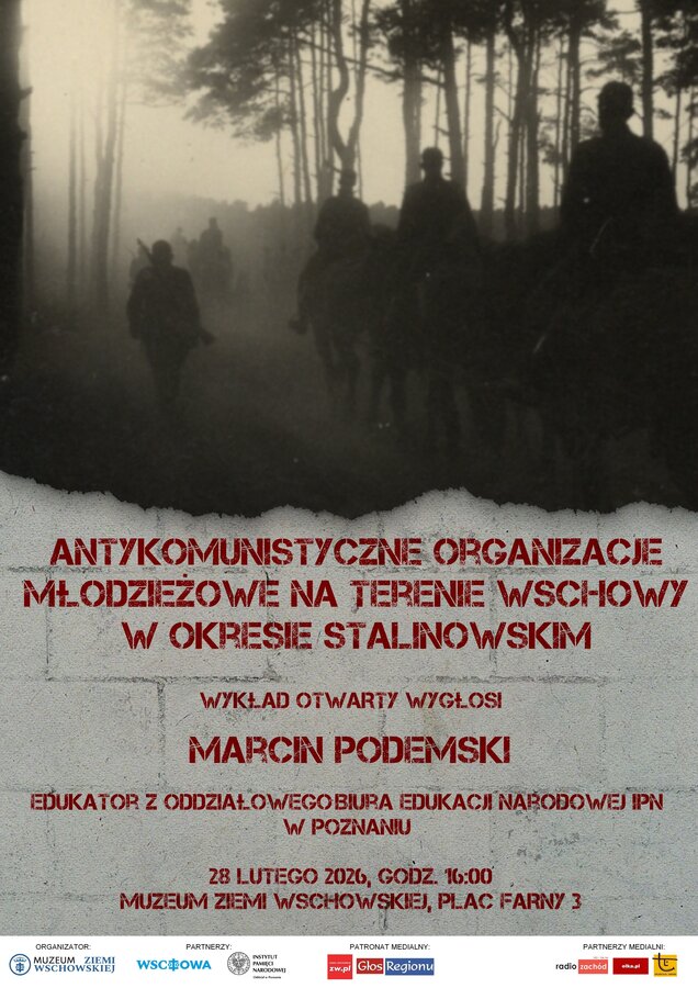 Muzeum Ziemi Wschowskiej ma przyjemność zaprosić na wykład otwarty pt. "Antykomunistyczne organizacje młodzieżowe na terenie Wschowy w okresie stalinowskim". Podczas wykładu zaprezentowany zostanie portret zbiorowy polskiej młodzieży zaangażowanej w działalność antykomunistyczną w latach 1944-1956, jak również przybliżone zostaną dwie organizacje tego typu działające we Wschowie: Młodzieżowe Siły Zbrojne oraz grupa Bogdana Müllera.