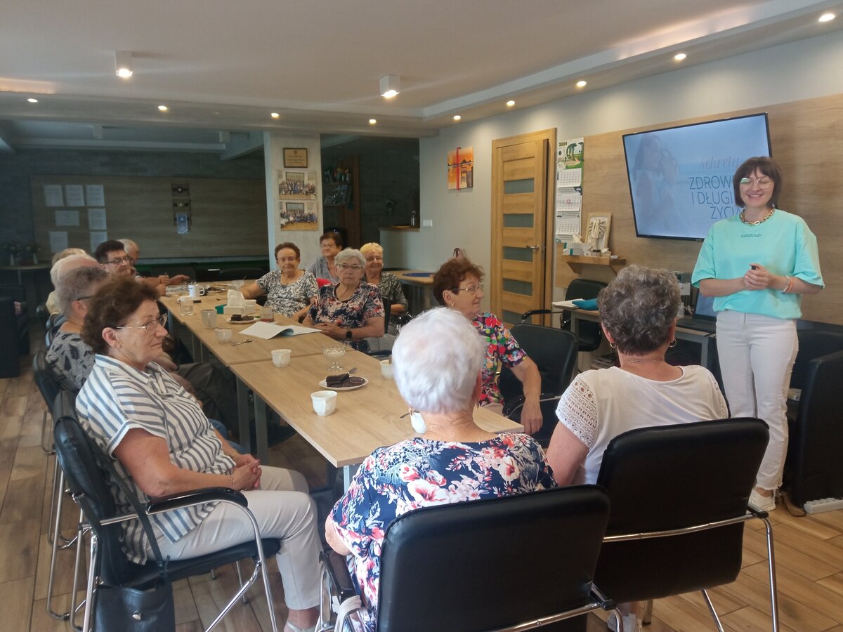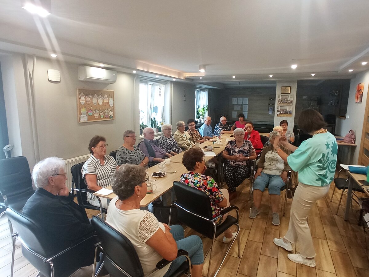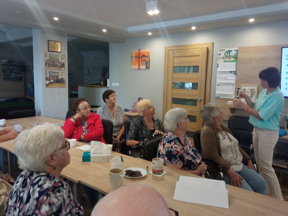 W czwartkowy ranek, 8 sierpnia 2024 Klub wypełnił się Seniorami, którzy chcieli posłuchać wykładu, który poprowadziła pani Ewa Wojciech. Wykład dotyczył zdrowego i długiego życia, a także aspektów z tym związanych, czyli odpowiedniego nawodnienia, diety, dobrego snu oraz obraniu celu, do którego dążymy każdego dnia.