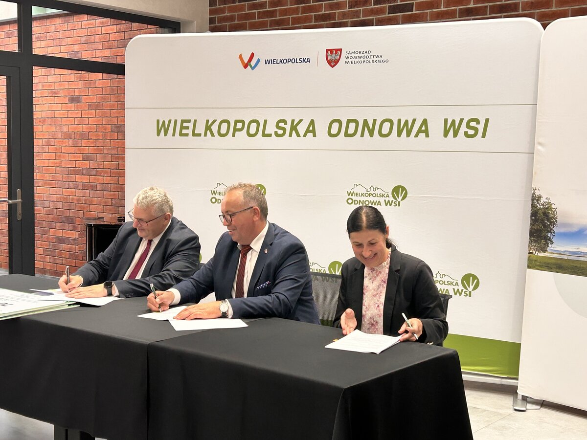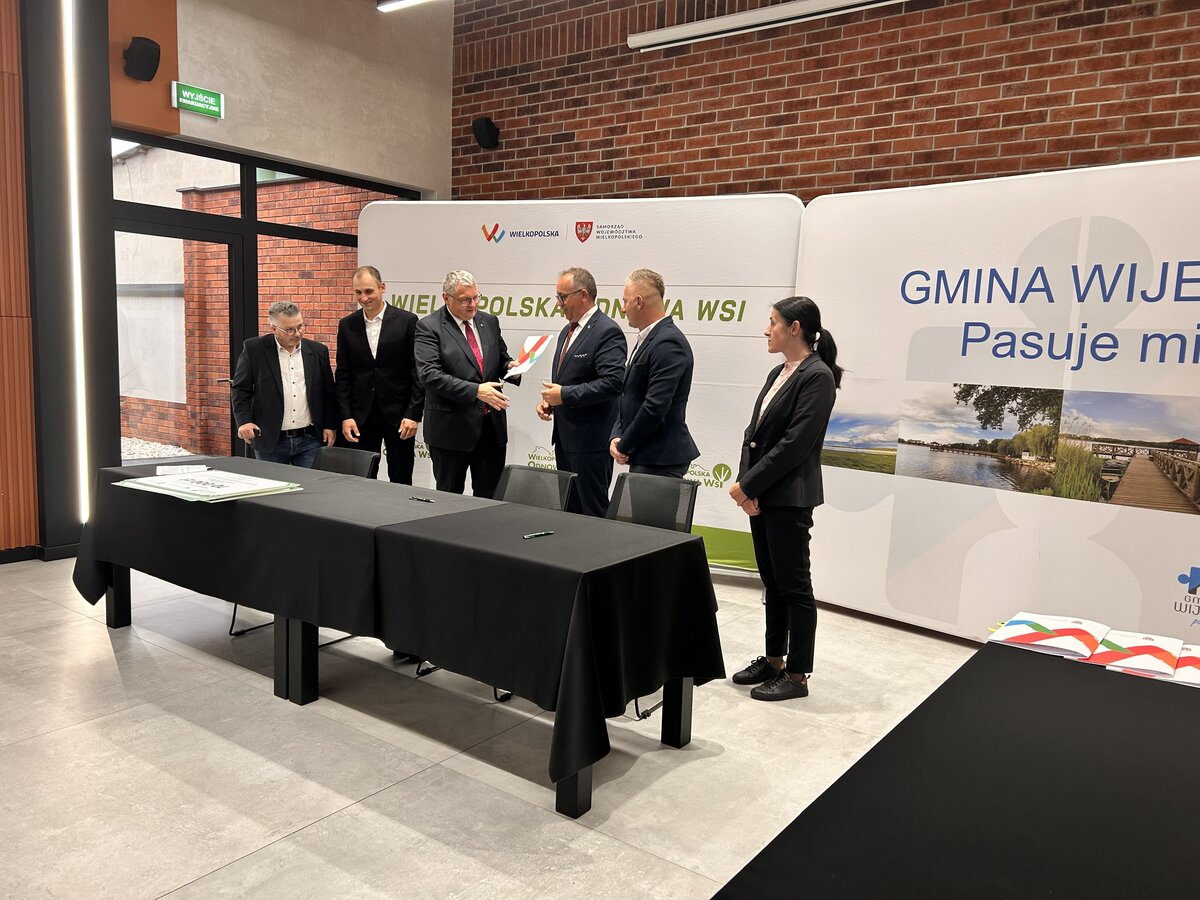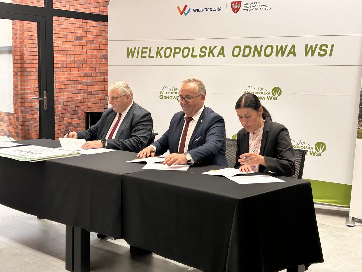 Dnia 11 lipca 2025 roku w Centrum Kulturalno-Kongresowym w Wijewie odbyło się uroczyste podpisanie umów na dofinansowanie projektów w ramach XV edycji konkursu „Pięknieje Wielkopolska Wieś”. Dokumenty podpisali: Wicemarszałek Województwa Wielkopolskiego – Pan Krzysztof Grabowski, Wójt Gminy Wijewo – Pan Mieczysław Drożdżyński oraz Skarbnik Gminy – Pani Ilona Giera.