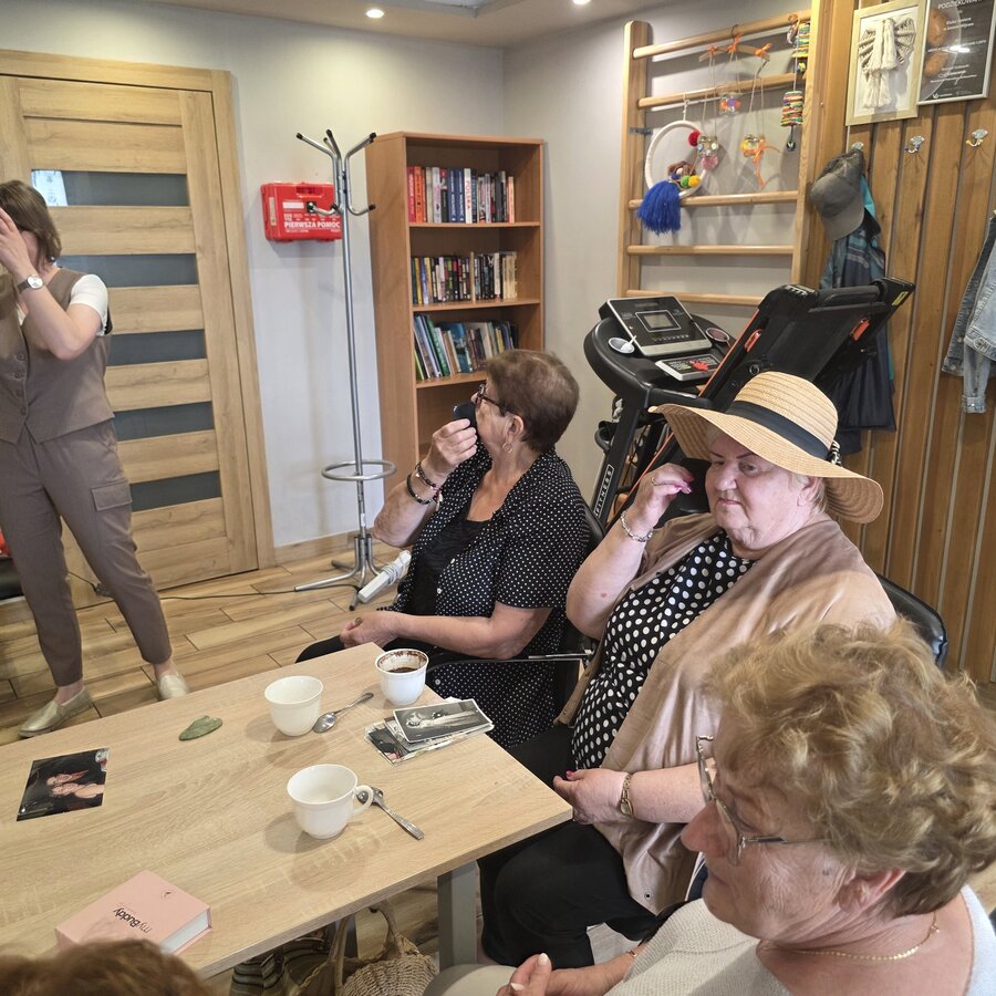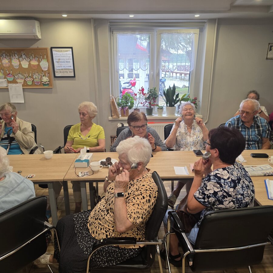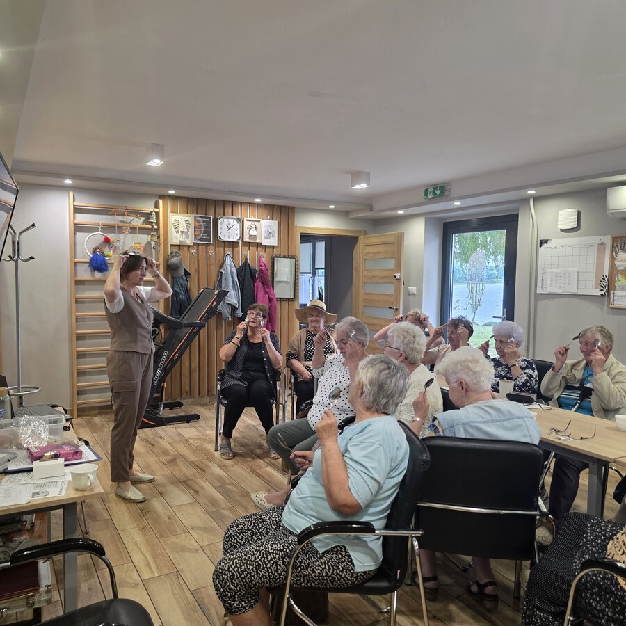 Po części teoretycznej przyszedł czas na część praktyczną. Pani Ewa pokazała Seniorkom różne przedmioty, które będą im pomocne w masażu liftingującym czy też limfatycznym. Różnego rodzaju kamienie do masażu, rollery, szczoteczki – wszystko to mogły Panie wypróbowywać na swojej twarzy. Jednak nie mając żadnych specjalistycznych narzędzi, można posługiwać się zwykłymi łyżkami kuchennymi. Nasz gość pokazał jakie ruchy wykonywać i jak często, żeby masaż dał oczekiwane efekty. Dowiedzieliśmy się też czym jest masaż Kobido, który pani Ewa wykonuje na co dzień u swoich pacjentek.